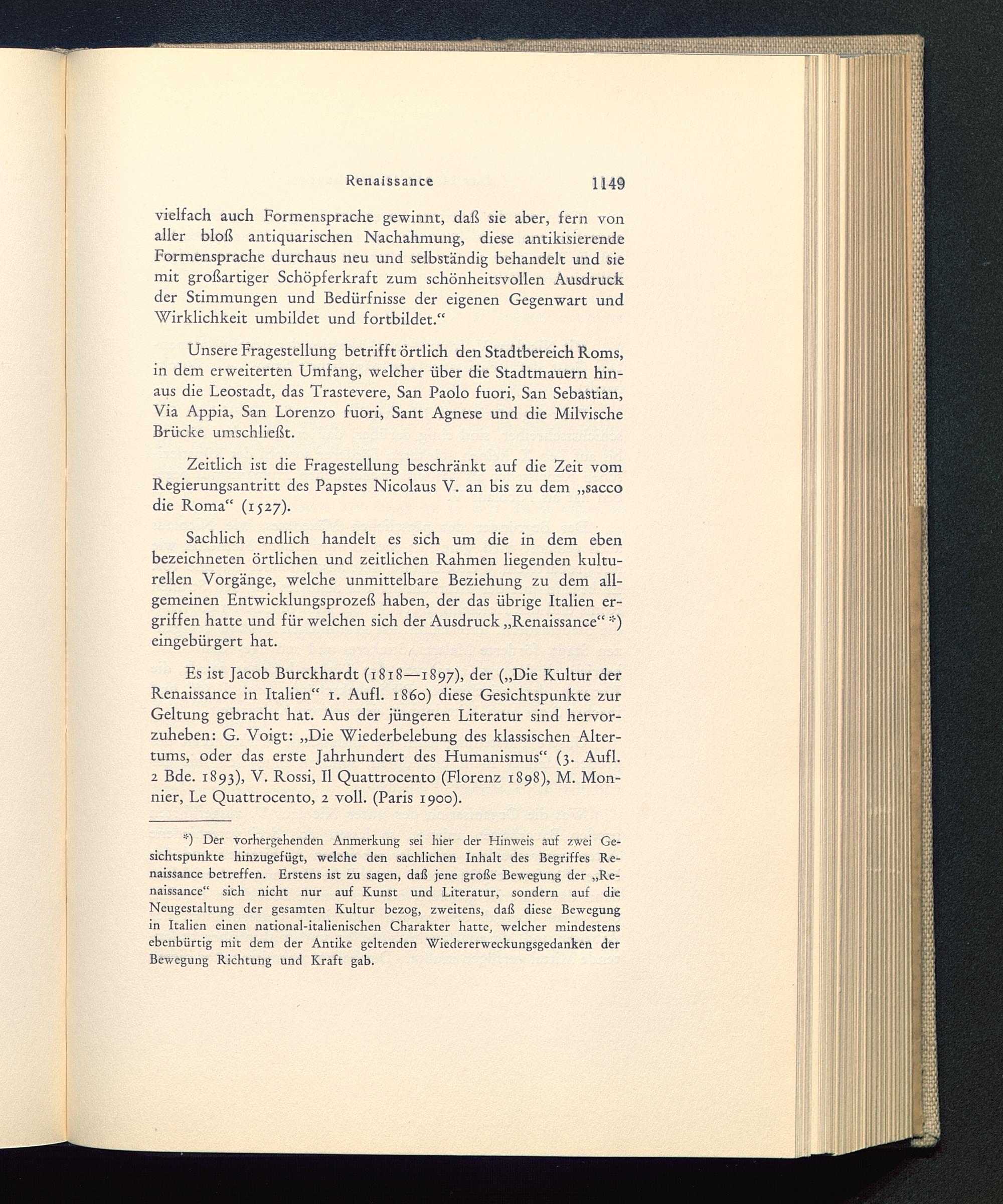 Sachlich endlich handelt es sich um die in dem ebenbezeichneten örtlichen und zeitlichen Rahmen liegenden kultu-rellen Vorgänge, welche unmittelbare Beziehung zu dem all-gemeinen Entwicklungsprozeß haben, der das übrige Italien er-griffen hatte und für welchen sich der Ausdruck „Renaissance“ *)eingebürgert hat.