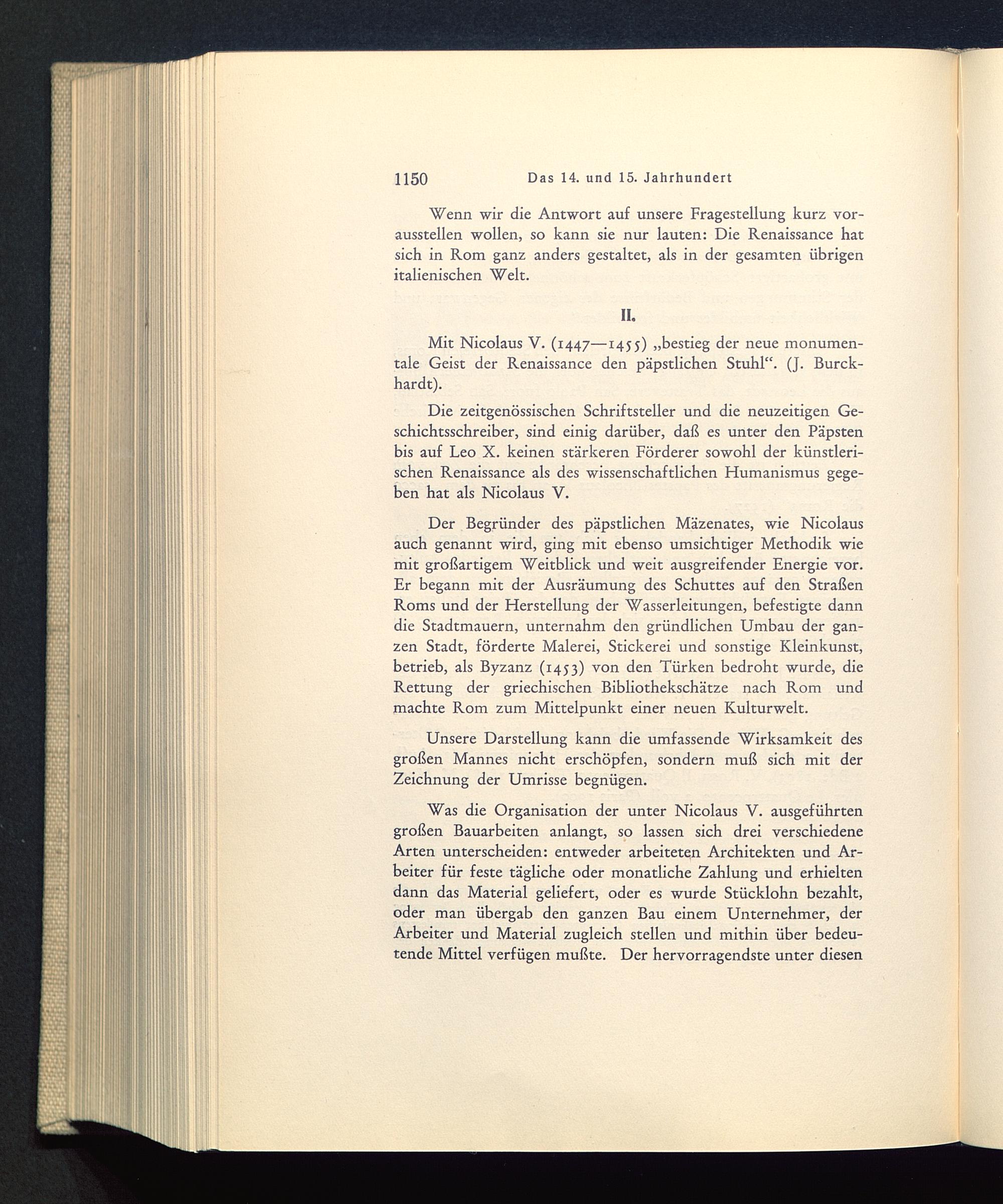 Mit Nicolaus V. (1447—1455) „bestieg der neue monumen-tale Geist der Renaissance den päpstlichen Stuhl“. (J. Burck-hardt).