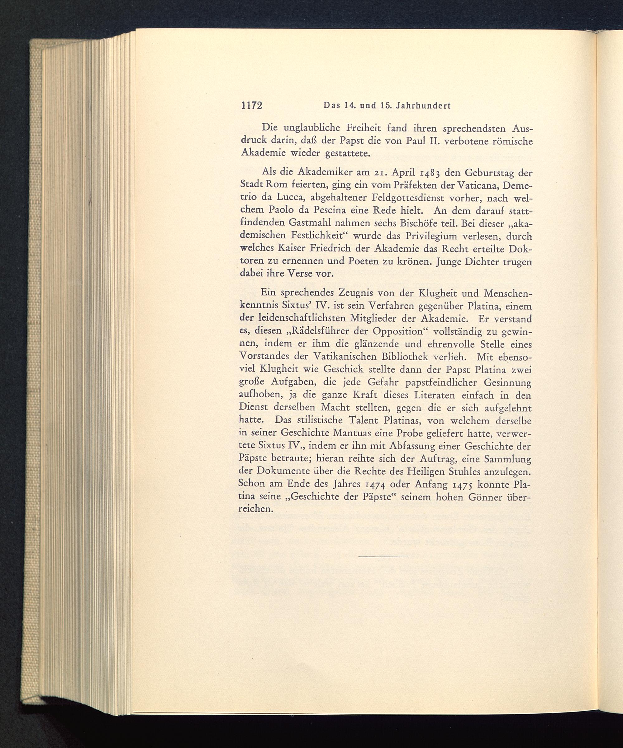 Die unglaubliche Freiheit fand ihren sprechendsten Aus-druck darin, daß der Papst die von Paul II. verbotene römischeAkademie wieder gestattete.