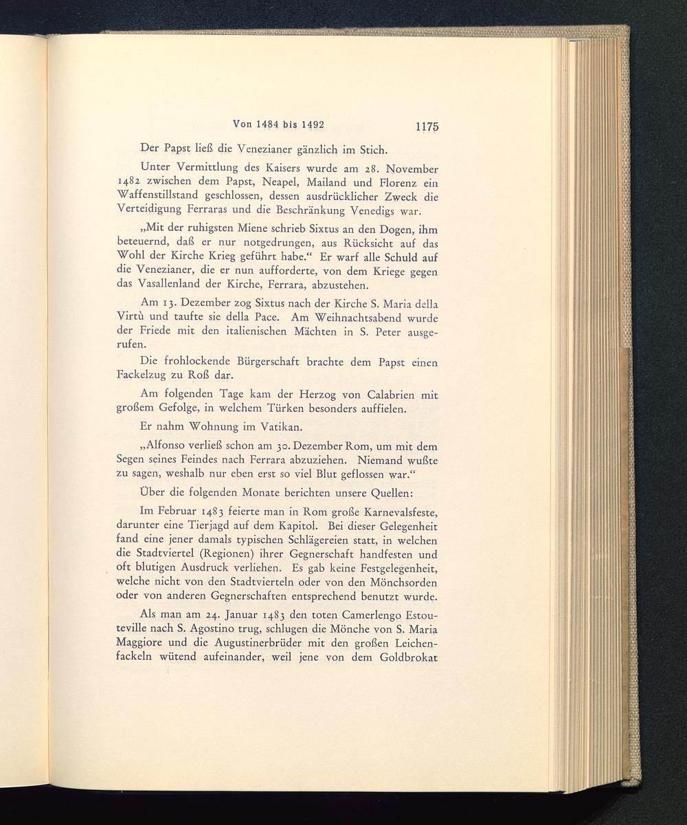 „Alfonso verließ schon am 30. Dezember Rom , um mit demSegen seines Feindes nach Ferrara abzuziehen. Niemand wußtezu sagen, weshalb nur eben erst so viel Blut geflossen war.“