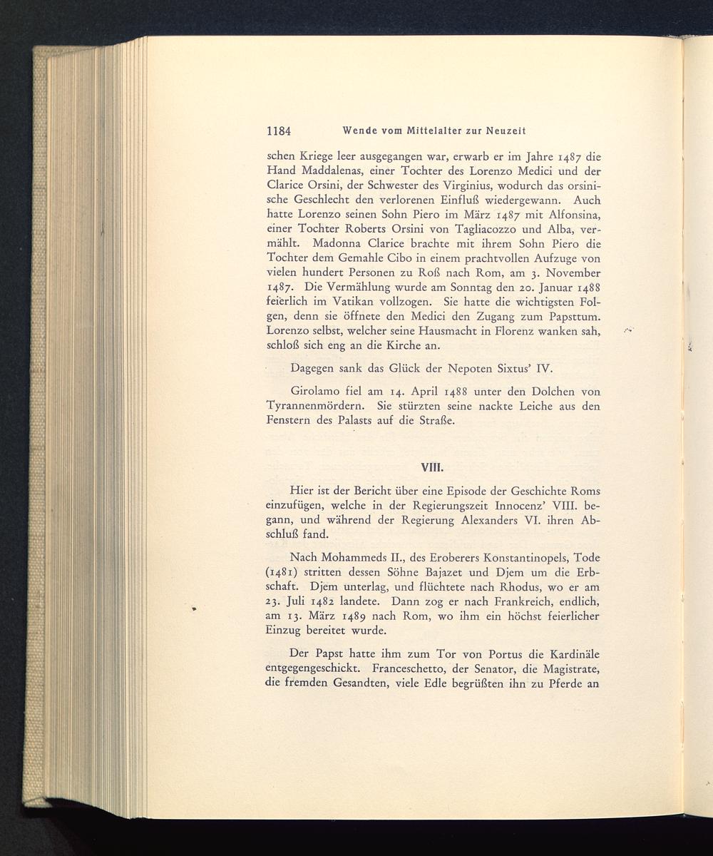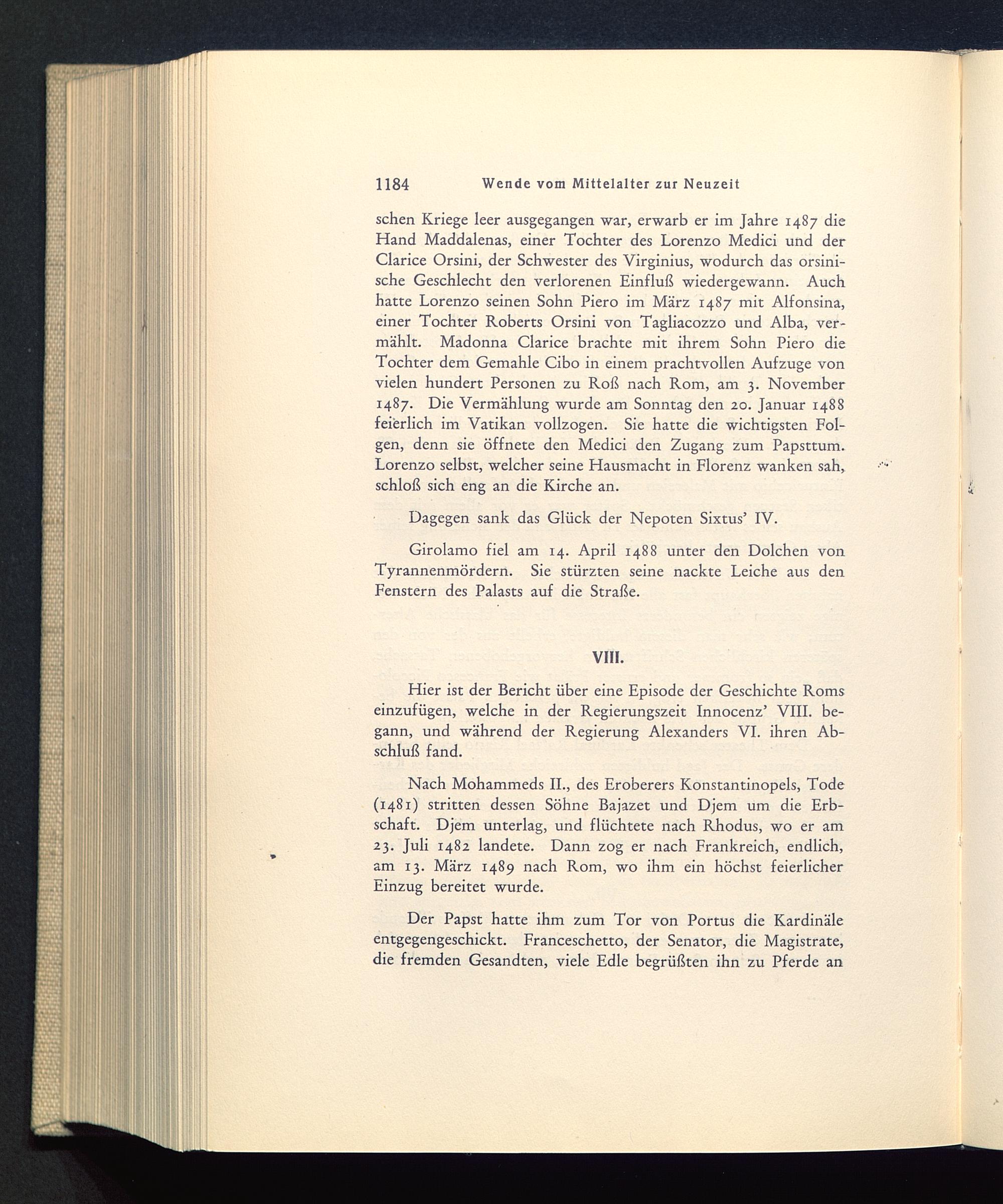 Hier ist der Bericht über eine Episode der Geschichte Romseinzufügen, welche in der Regierungszeit Innocenz’ VIII. be-gann, und während der Regierung Alexanders VI. ihren Ab-schluß fand.