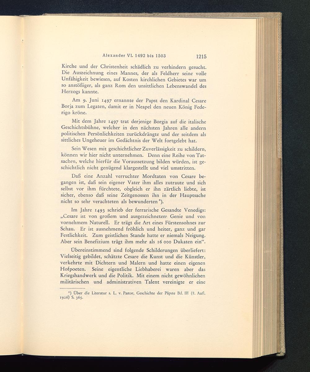 Daß eine Anzahl verruchter Mordtaten von Cesare be-gangen ist, daß sein eigener Vater ihm alles zutraute und sichselbst vor ihm fürchtete, obgleich er ihn zärtlich liebte, istsicher, ebenso daß seine Zeitgenossen ihn in der Hauptsachenicht so sehr verachteten als bewunderten *).
