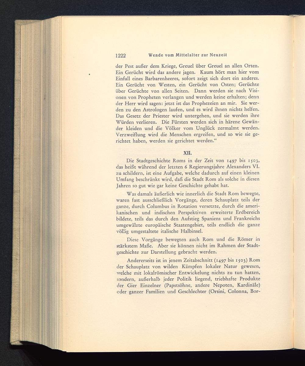 Was damals äußerlich wie innerlich die Stadt Rom bewegte,waren fast ausschließlich Vorgänge, deren Schauplatz teils derganze, durch Columbus in Rotation versetzte, durch die ameri-kanischen und indischen Perspektiven erweiterte Erdbereichbildete, teils das durch den Aufstieg Spaniens und Frankreichs umgewälzte europäische Staatengebiet, teils endlich die ganzevöllig umgestaltete italische Halbinsel.