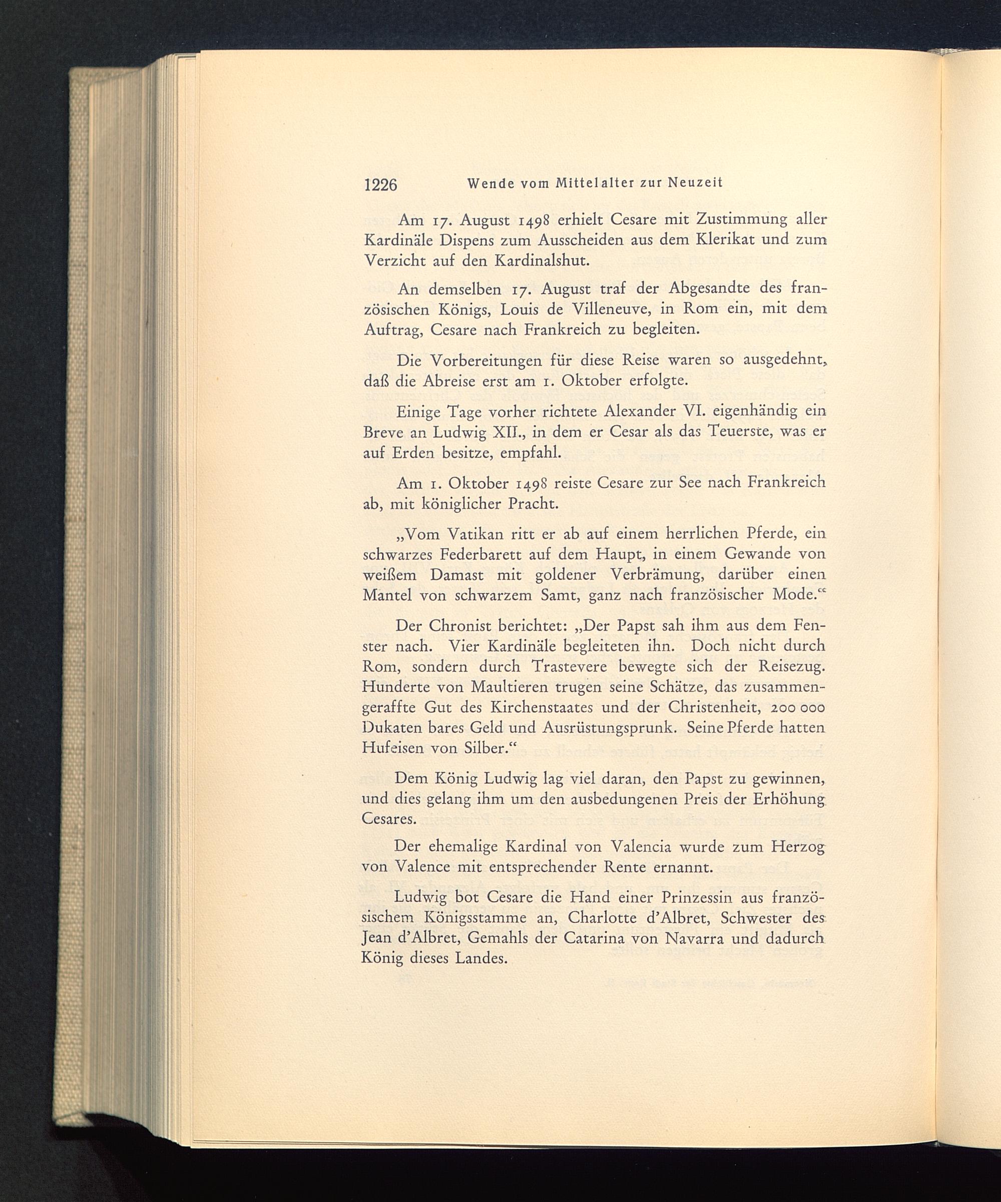 Einige Tage vorher richtete Alexander VI. eigenhändig einBreve an Ludwig XII. , in dem er Cesar als das Teuerste, was erauf Erden besitze, empfahl.