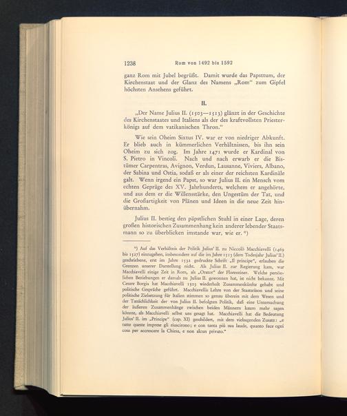 *) Auf das Verhältnis der Politik Julius’ II. zu Niccolö Macchiavelli (1469bis IJ27) einzugehen, insbesondere auf die im Jahre 1513 (dem Todesjahr Julius’II .)geschriebene, erst im Jahre 1532 gedruckte Schrift „11 principe“, erlauben dieGrenzen unserer Darstellung nicht. Als Julius II. zur Regierung kam, warMacchiavelli einige Zeit in Rom, als „Orator“ der Florentiner. Welche persön-lichen Beziehungen er damals zu Julius II. gewonnen hat, ist nicht bekannt. MitCesare Borgia hat Macchiavelli 1503 wiederholt Zusammenkünfte gehabt undpolitische Gespräche geführt. Macchiavellis Lehre von der Staatsräson und seinepolitische Zielsetzung für Italien stimmen so genau überein mit dem Wesen undder Tatsächlichkeit der von Julius II. befolgten Politik, daß eine Untersuchungder äußeren Zusammenhänge zwischen beiden Männern kaum mehr sagenkönnte, als Macchiavelli selbst uns gesagt hat. Macchiavelli hat die BedeutungJulius’II. im „Principe“ (cap. XI) geschildert, mit dem vielsagenden Zusatz: „etutte queste imprese gli riuscirono; e con tanta piü sua laude, quanto fece ognicosa per accrescere la Chiesa, e non alcun privato.”