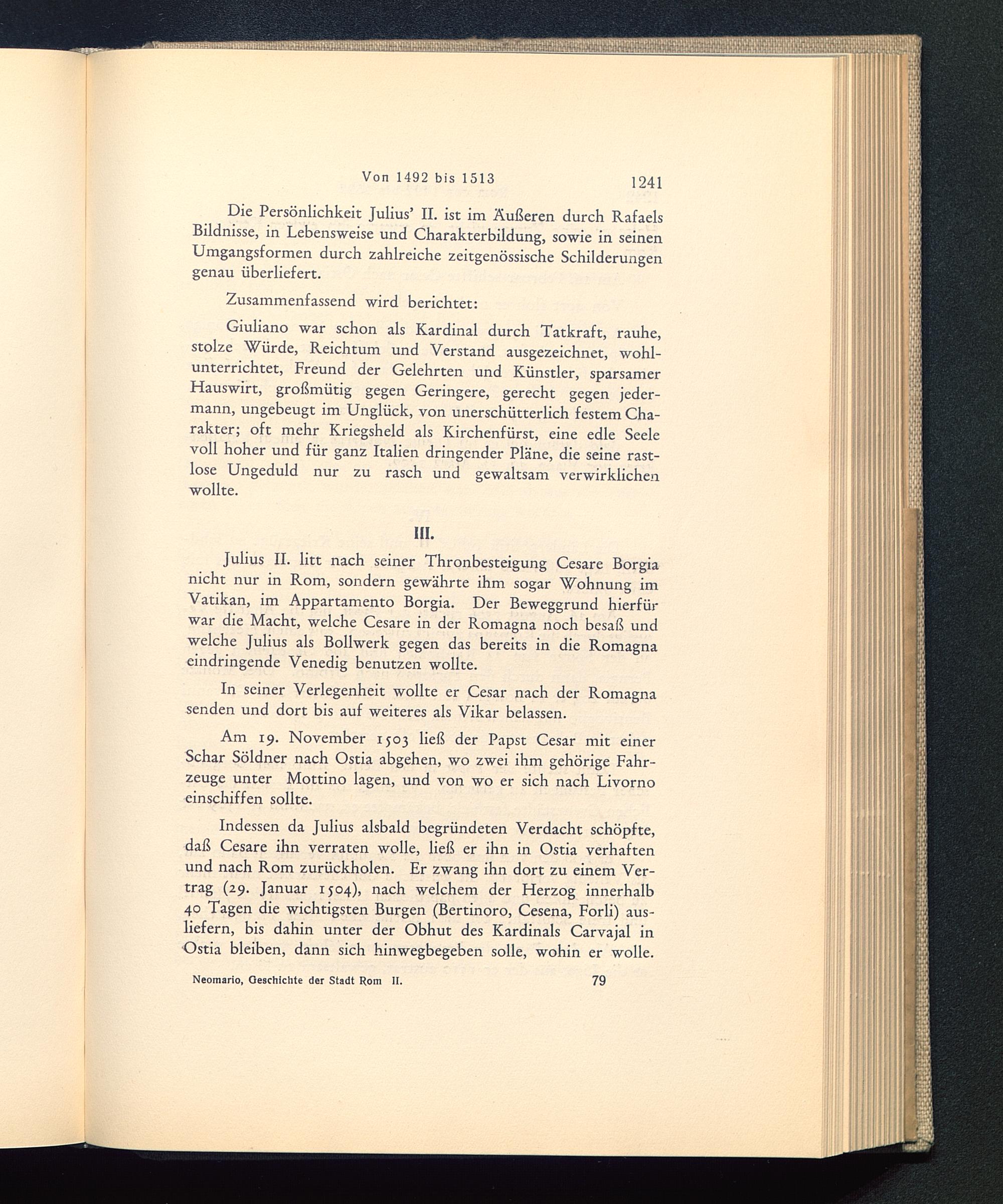 Am 19. November 1503 ließ der Papst Cesar mit einerSchar Söldner nach Ostia abgehen, wo zwei ihm gehörige Fahr-zeuge unter Mottino lagen, und von wo er sich nach Livorno einschiffen sollte.