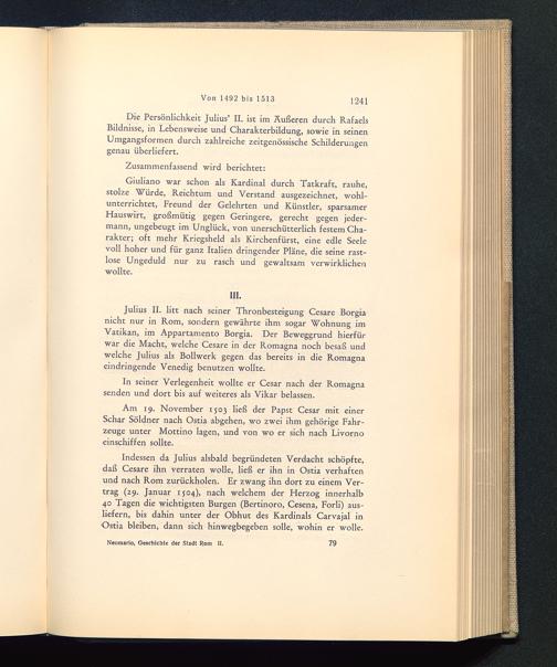 Julius II. litt nach seiner Thronbesteigung Cesare Borgia nicht nur in Rom , sondern gewährte ihm sogar Wohnung imVatikan , im Appartamento Borgia. Der Beweggrund hierfürwar die Macht, welche Cesare in der Romagna noch besaß undwelche Julius als Bollwerk gegen das bereits in die Romagna eindringende Venedig benutzen wollte.