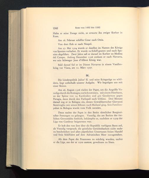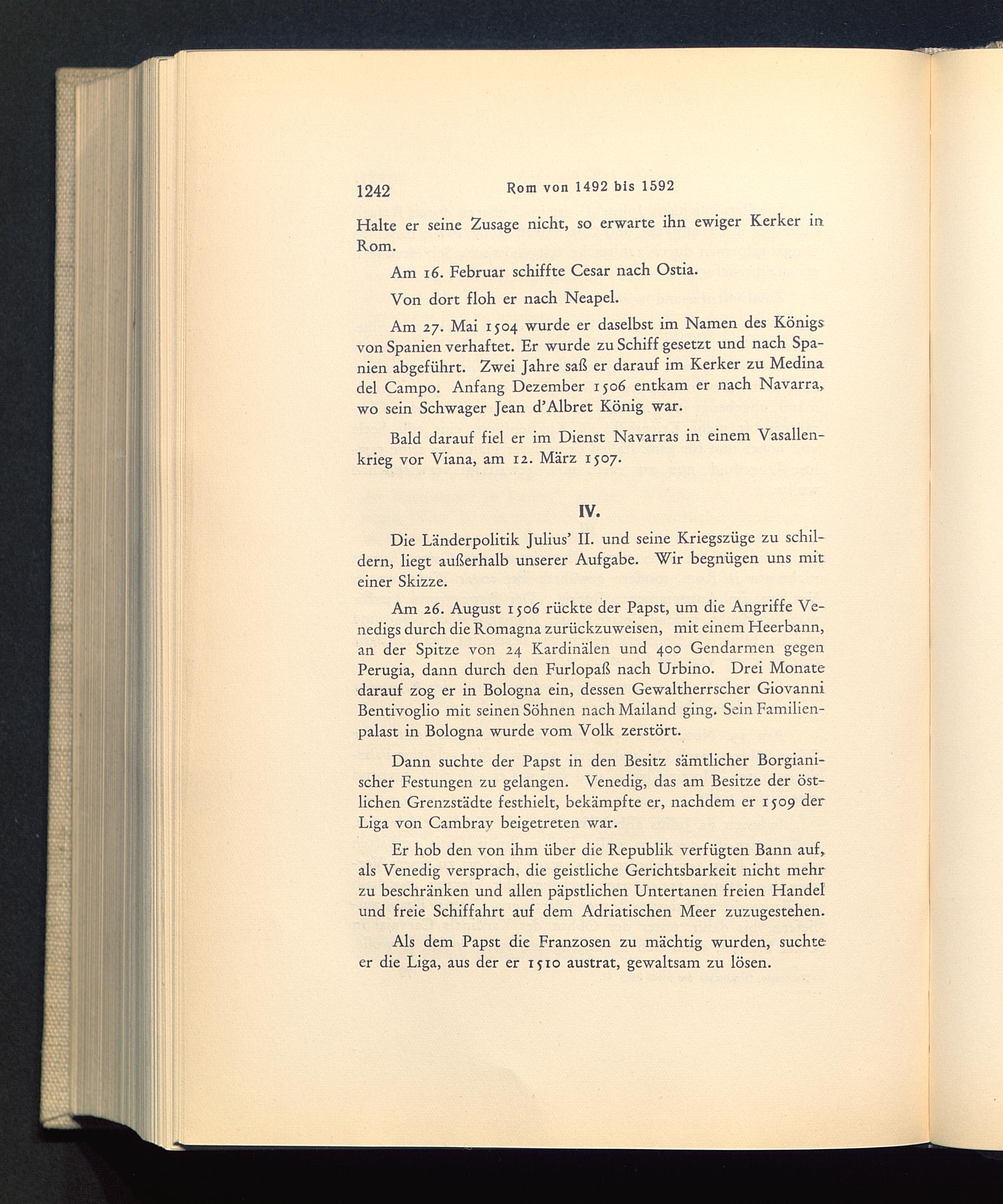 Dann suchte der Papst in den Besitz sämtlicher Borgiani-scher Festungen zu gelangen. Venedig, das am Besitze der öst-lichen Grenzstädte festhielt, bekämpfte er, nachdem er 1509 derLiga von Cambrav beigetreten war.