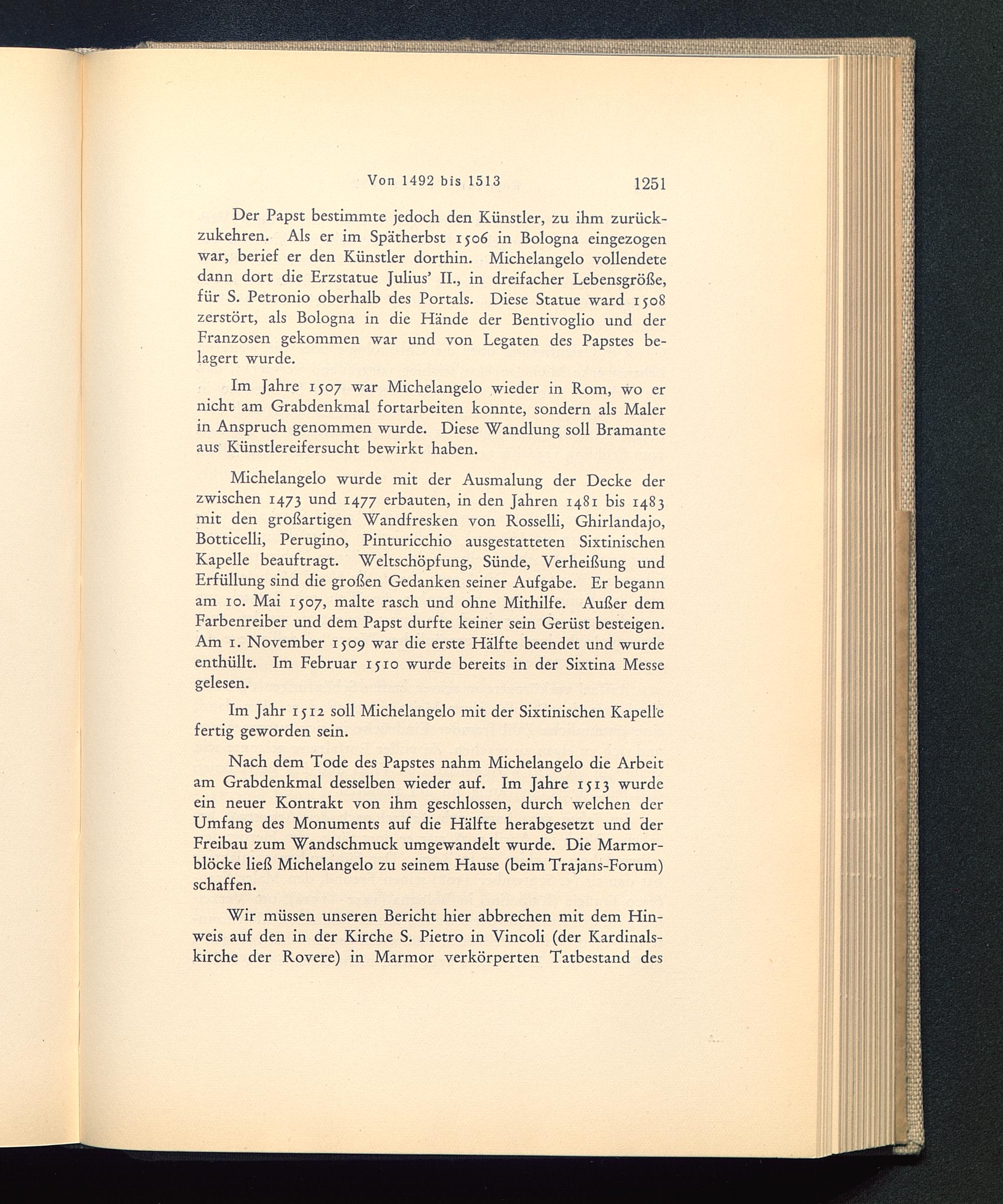Im Jahre ijo 7 war Michelangelo wieder in Rom , wo ernicht am Grabdenkmal fortarbeiten konnte, sondern als Malerin Anspruch genommen wurde. Diese "Wandlung soll Bramante aus Künstlereifersucht bewirkt haben.