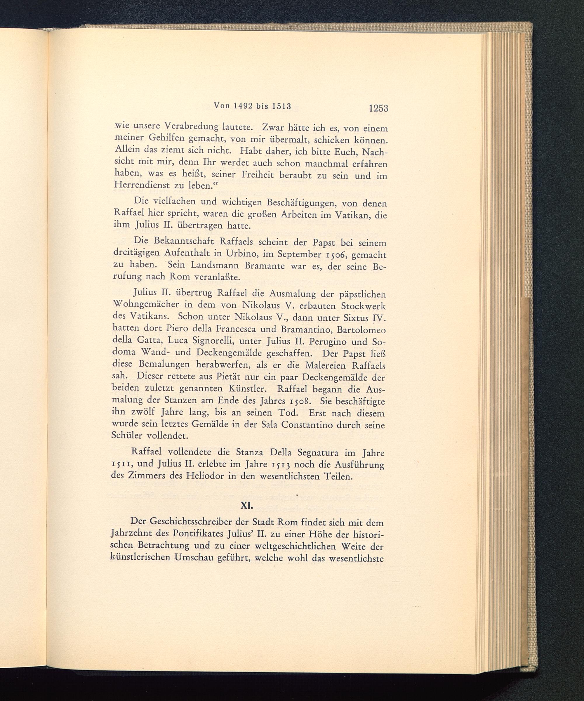 Die Bekanntschaft Raffaels scheint der Papst bei seinemdreitägigen Aufenthalt in Urbino , im September 1506, gemachtzu haben. Sein Landsmann Bramante war es, der seine Be-rufung nach Rom veranlaßte.