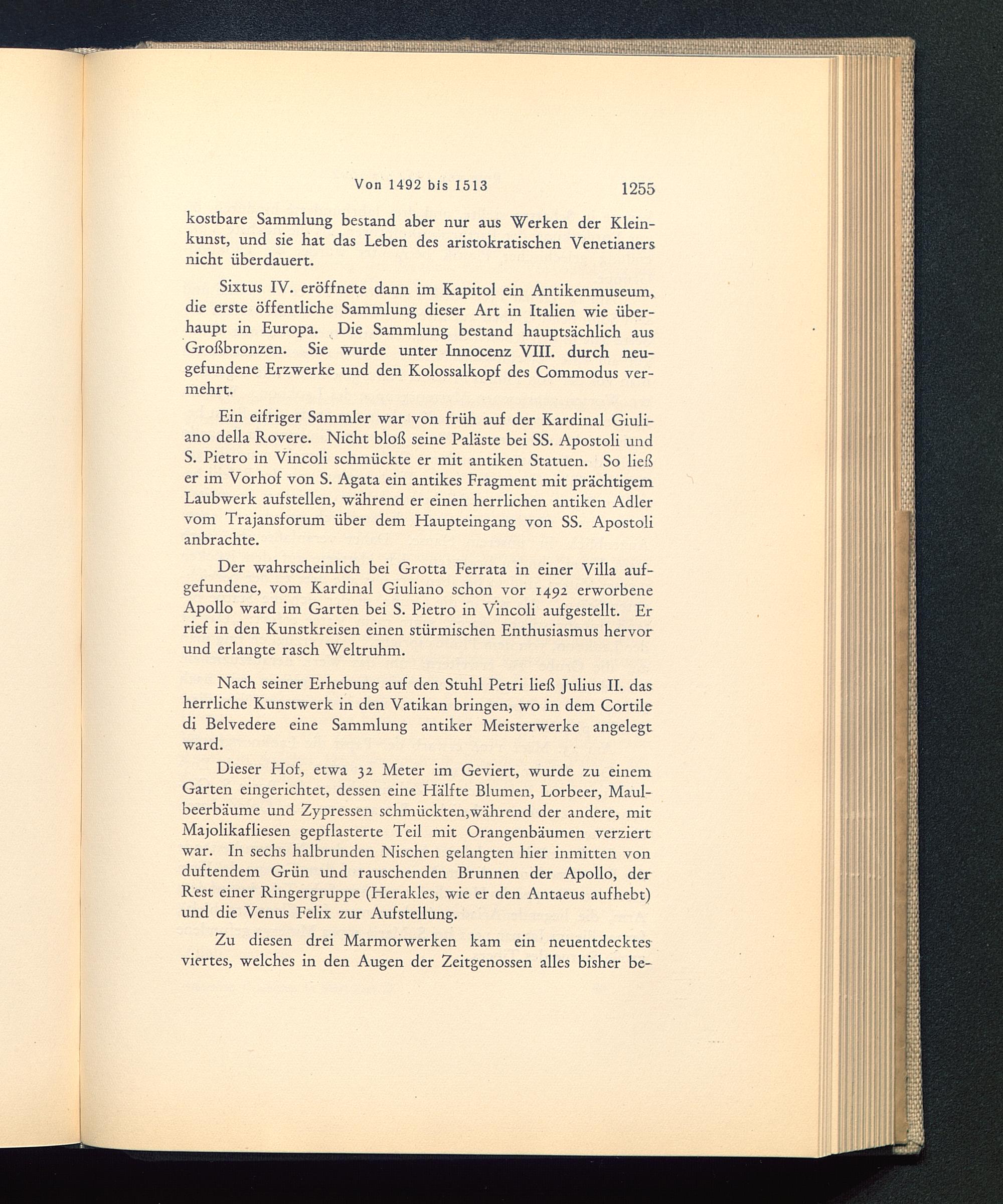 Ein eifriger Sammler war von früh auf der Kardinal Giuli-ano della Rovere. Nicht bloß seine Paläste bei SS. Apostoli undS. Pietro in Vincoli schmückte er mit antiken Statuen. So ließer im Vorhof von S. Agata ein antikes Fragment mit prächtigemLaubwerk aufstellen, während er einen herrlichen antiken Adlervom Trajansforum über dem Haupteingang von SS. Apostolianbrachte.