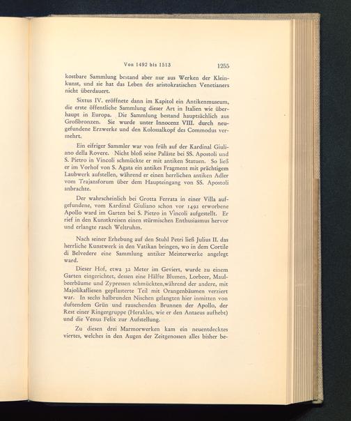 Sixtus IV. eröffnete dann im Kapitol ein Antikenmuseum,die erste öffentliche Sammlung dieser Art in Italien wie über-haupt in Europa . Die Sammlung bestand hauptsächlich ausGroßbronzen. Sie wurde unter Innocenz VIII. durch neu-gefundene Erzwerke und den Kolossalkopf des Commodus ver-mehrt.