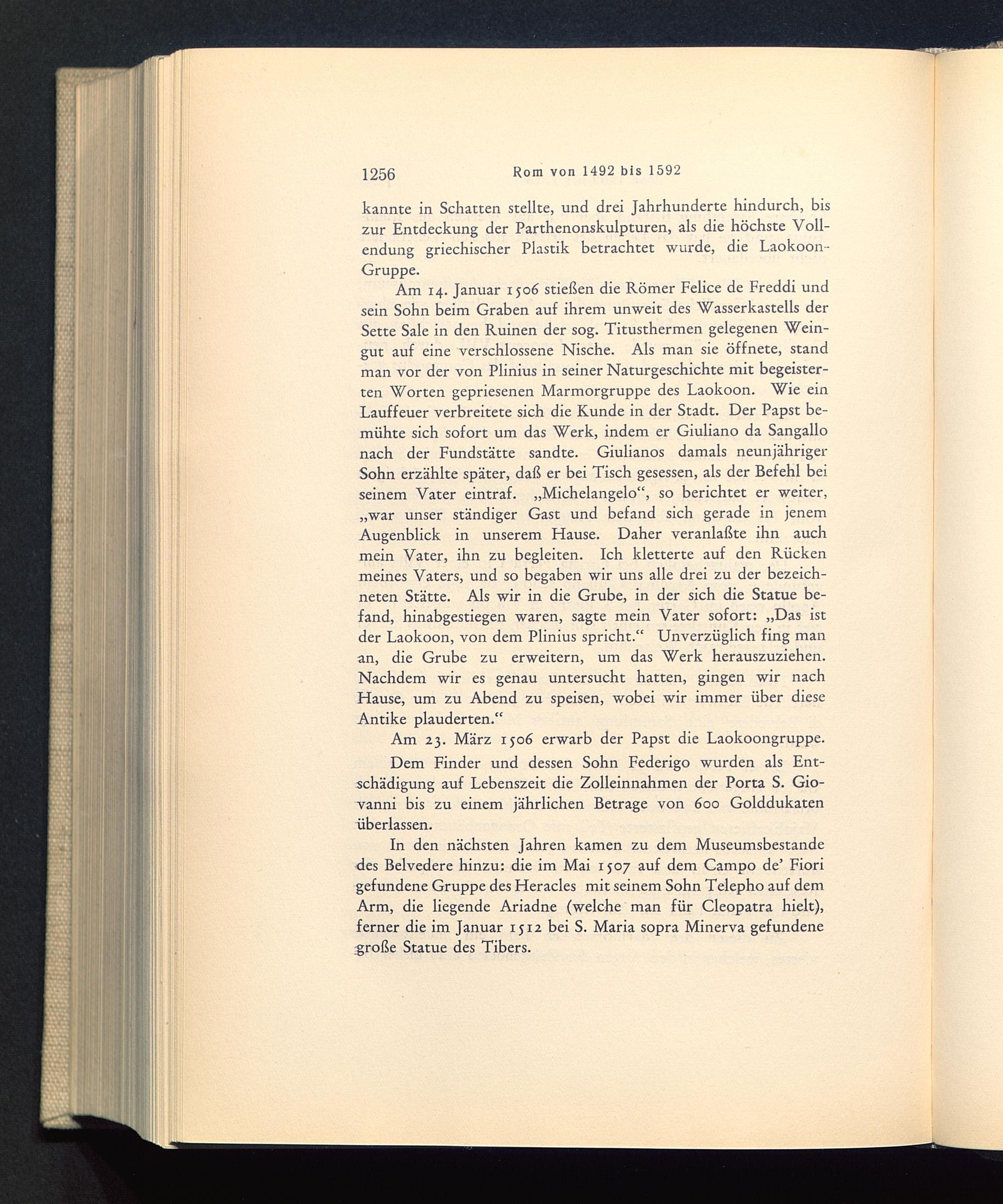 In den nächsten Jahren kamen zu dem Museumsbestandedes Belvedere hinzu: die im Mai 1507 auf dem Campo de’ Fiori gefundene Gruppe des Heracles mit seinem Sohn Telepho auf demArm, die liegende Ariadne (welche man für Cleopatra hielt),ferner die im Januar 1512 bei S. Maria sopra Minerva gefundenegroße Statue des Tibers.