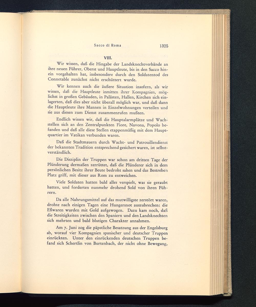 Die Disziplin der Truppen war schon am dritten Tage derPlünderung dermaßen zerrüttet, daß die Plünderer sich in dempersönlichen Besitz ihrer Beute bedroht sahen und das BestrebenPlatz griff, mit dieser aus Rom zu entweichen.
