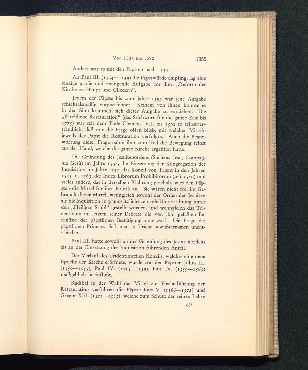 Die Gründung des Jesuitenordens (Societas Jesu , Compag-nia Gesü) im Jahre 1538, die Einsetzung der Kongregation derInquisition im Jahre 1542, das Konzil von Trient in den Jahren1545 bis 1563, der Index Librorum Prohibitorum (seit 1550) undvieles andere, das in derselben Richtung geschah, wies den Päp-sten die Mittel für ihre Politik an. Sie waren nicht frei im Ge-brauch dieser Mittel, wenngleich sowohl der Orden der Jesuiten als die Inquisition in grundsätzliche zentrale Unterordnung unterden „Heiligen Stuhl “ gestellt wurden, und wenngleich das Tri-dentinum im letzten seiner Dekrete die von ihm gefaßten Be-schlüsse der päpstlichen Bestätigung unterwarf. Die Frage despäpstlichen Primates ließ man in Trient bewußtermaßen unent-schieden.