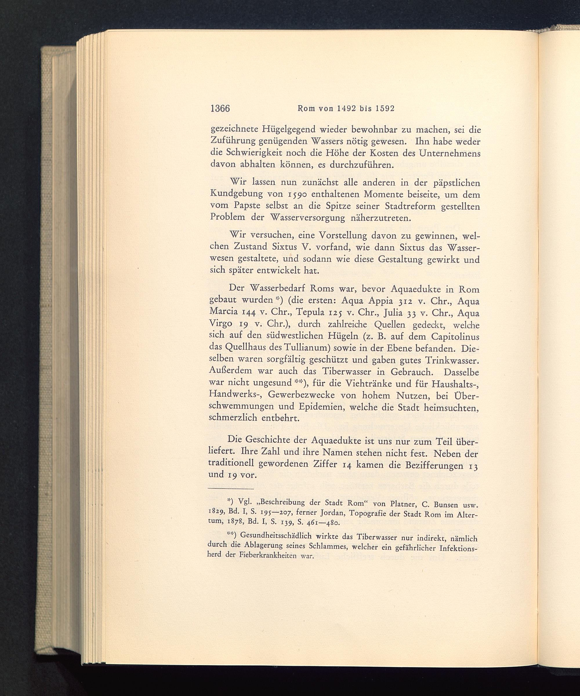 Wir lassen nun zunächst alle anderen in der päpstlichenKundgebung von 1590 enthaltenen Momente beiseite, um demvom Papste selbst an die Spitze seiner Stadtreform gestelltenProblem der Wasserversorgung näherzutreten.