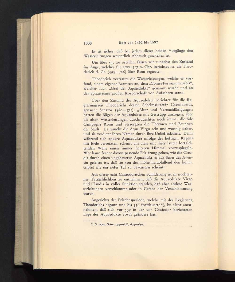 Angesichts der Friedensperiode, welche mit der RegierungTheoderichs begann und bis 536 fortdauerte *), ist nicht anzu-nehmen, daß sich vor 537 in der von Cassiodor berichtetenLage der Aquaedukte etwas geändert hat.