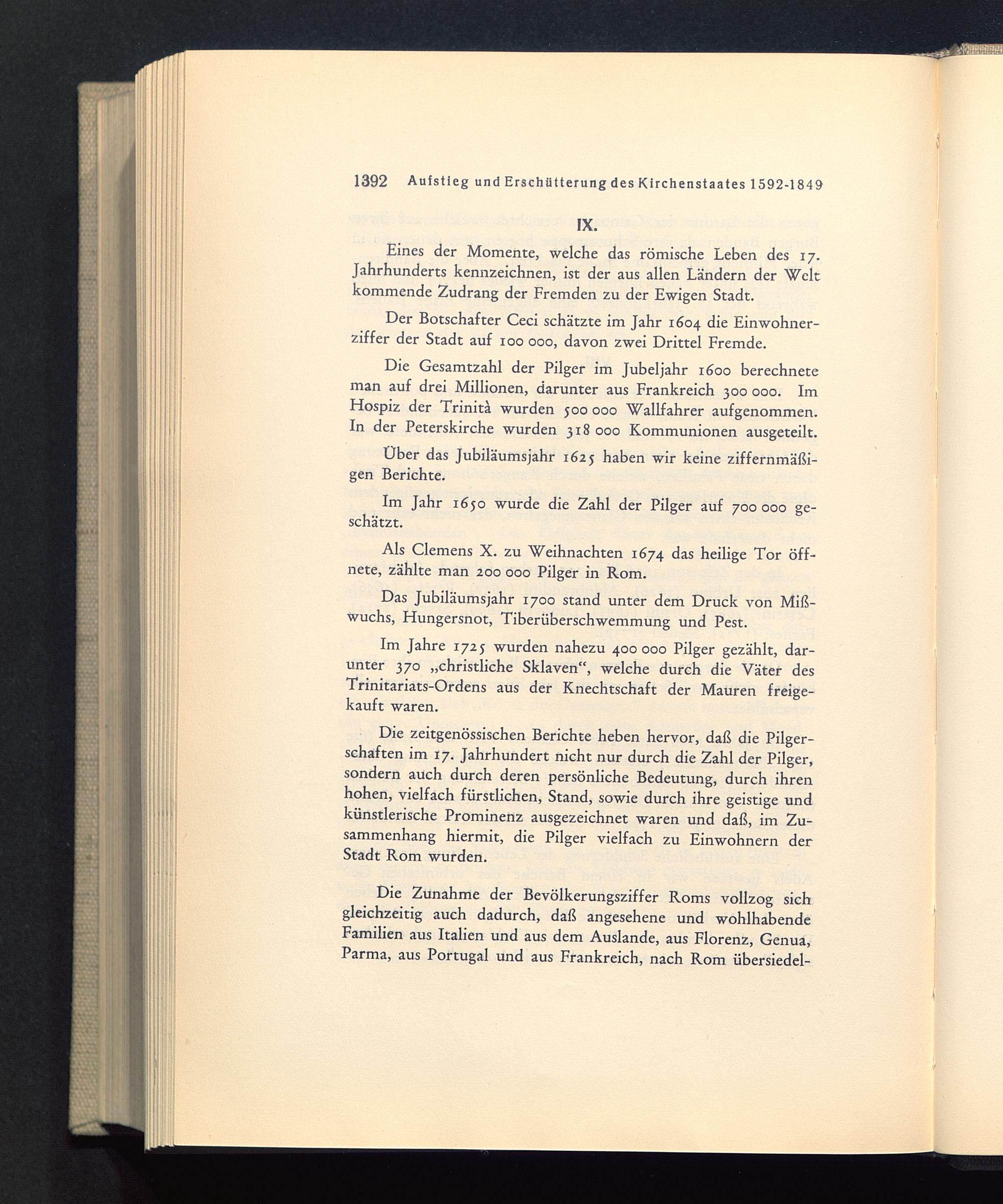 Die Gesamtzahl der Pilger im Jubeljahr 1600 berechneteman auf drei Millionen, darunter aus Frankreich 300 000. ImHospiz der Trinitä wurden joo 000 Wallfahrer aufgenommen.In der Peterskirche wurden 318 000 Kommunionen ausgeteilt.