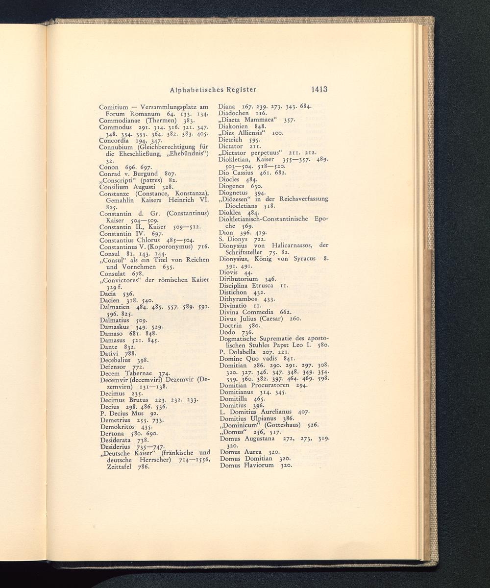 L. Domitius Aurelianus 407.Domitius Ulpianus 386.„Dominicum“ (Gotteshaus) 526.„Domus" 256, 517.