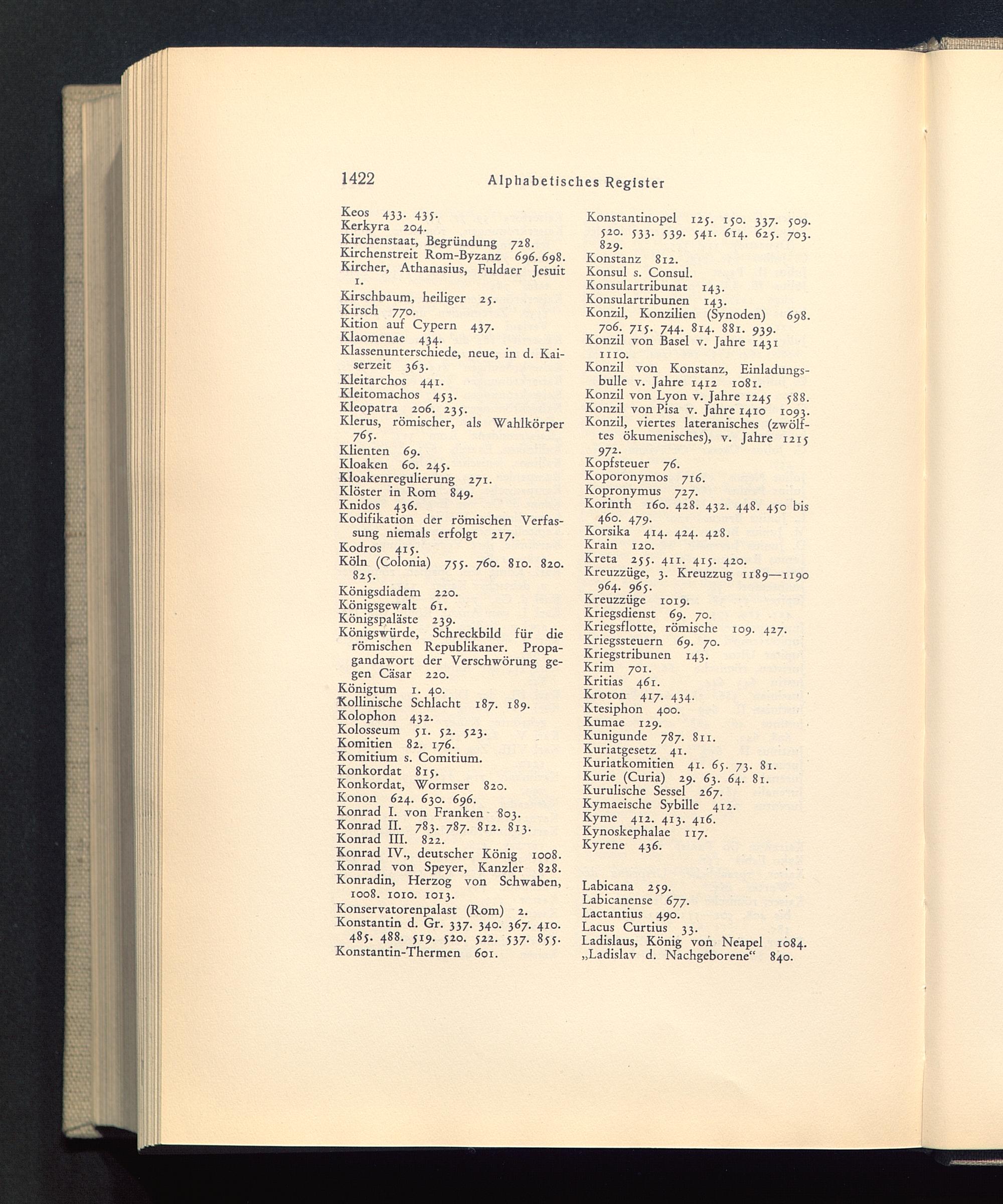 Konrad IV. , deutscher König 1008.Konrad von Speyer, Kanzler 828.Konradin, Herzog von Schwaben,1008. 1010. 1013.Konservatorenpalast (Rom ) 2.Konstantin d. Gr. 337. 340. 367. 410.