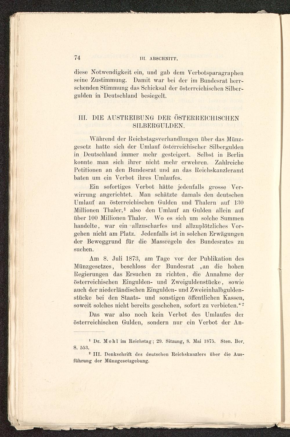 2 III. Denkschrift des deutschen Reichskanzlers über die Aus-führung der Mfinzgesetzgebung.