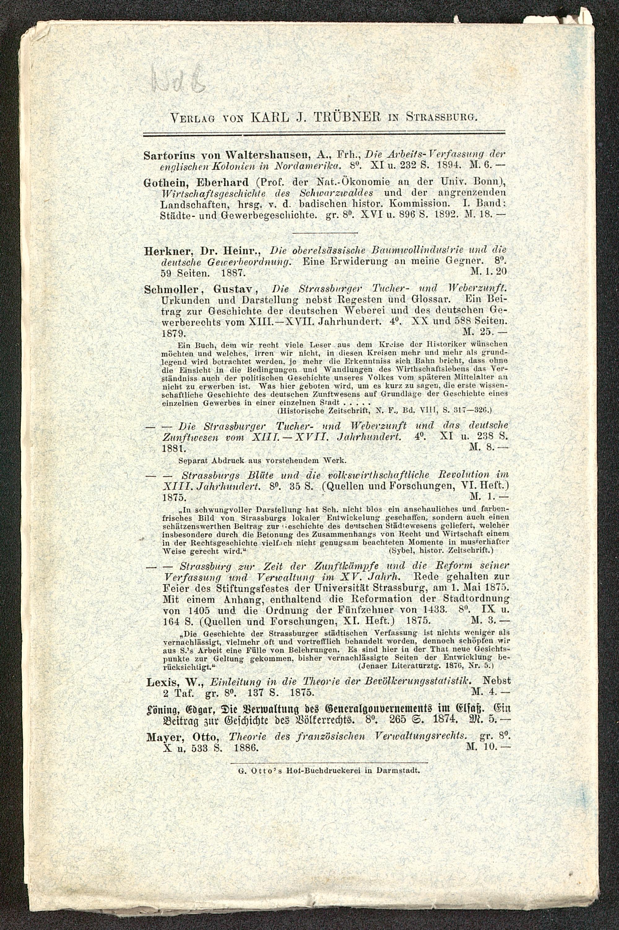 „In schwungvoller Darstellung hat Seh. nicht blos ein anschauliches und farben-frisches Bild von Strassburgs lokaler Eniwickelung geschalfen, sondern auch einenschUtzenswerthen Beitrag zur''eschichte des deutschen Städtewesens geliefert, welcherf insbesondere durch die Betonung des Zusammenhangs von Hecht und Wirtschaft einemin der Rechtsgeschichte vielfach nicht genugsam beachteten Momente in musterhafterAVeise gerecht wird." (Sybel, histor. Zeitschrift.)