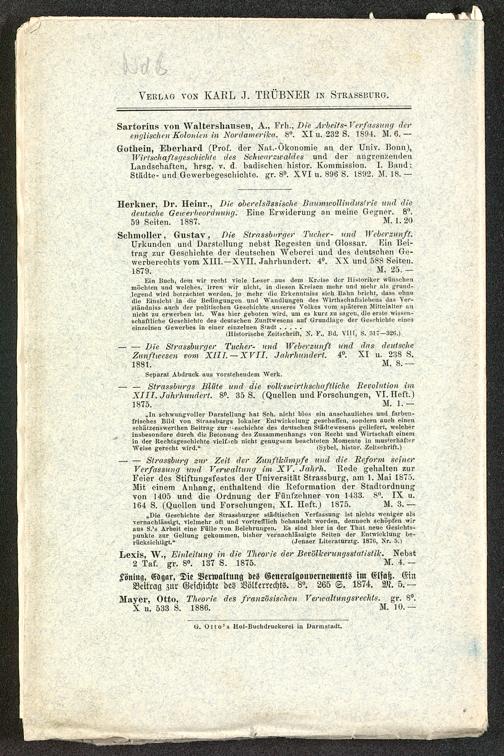 Schmoller, Gustav , Die Strassburger Tucher- und Wcbe.rzunft.Urkunden und Darstellung nebst Regesten und Glossar. Ein Bei-trag zur Geschichte der deutschen Weberei und des deutschen Ge-werberechts vom XIII. — XVII. Jahrhundert. 4°. XX und 588 Seiten.1879. M. 25. —