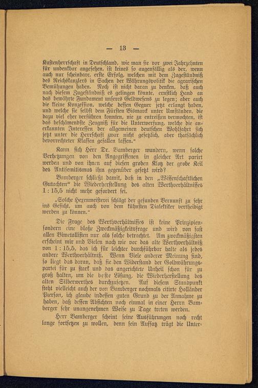 Bamberger schließt damit, daß in den „WissenschaftlichenGutachten" die Wiederherstellung des alten Werthverhältnisses1: 15,5 nicht mehr gefordert sei.