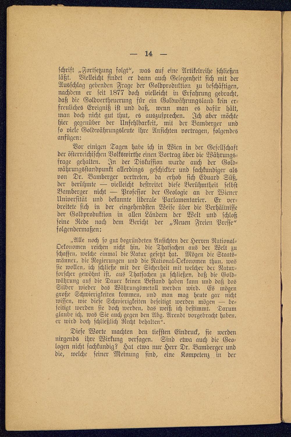 „Alle noch so gut begründeten Ansichten der Herren National-Oekonomen reichen nicht hin, die Thatsachen aus der Welt zuschaffen, welche einmal die Natur gesetzt hat. Mögen die Staats-männer, die Regierungen und die National-Oekonomen thun, wassie wollen, ich schließe mit der Sicherheit mit welcher der Natur-forscher gewöhnt ist, aus Thatsachen zn schließen, daß die Gold-währung auf die Dauer keinen Bestand haben kann und daß dasSilber wieder das Währungsmetall werden wird. Es mögengroße Schwierigkeiten kommen, und man mag heute gar nichtwissen, wie diese Schwierigkeiten beseitigt werden mögen — be-seitigt werden sie doch werden, das weiß ich bestimmt. Darumglaube ich, was Sie auch gegen den Abg. Arendt vorgebracht haben,er wird doch schließlich Recht behalten".