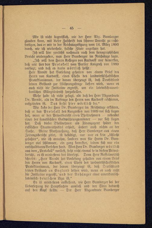 Ich will hier zunächst nochmals nach dem stenographischenBericht wiedergeben, was Herr Bamberger im Reichstage sagte.