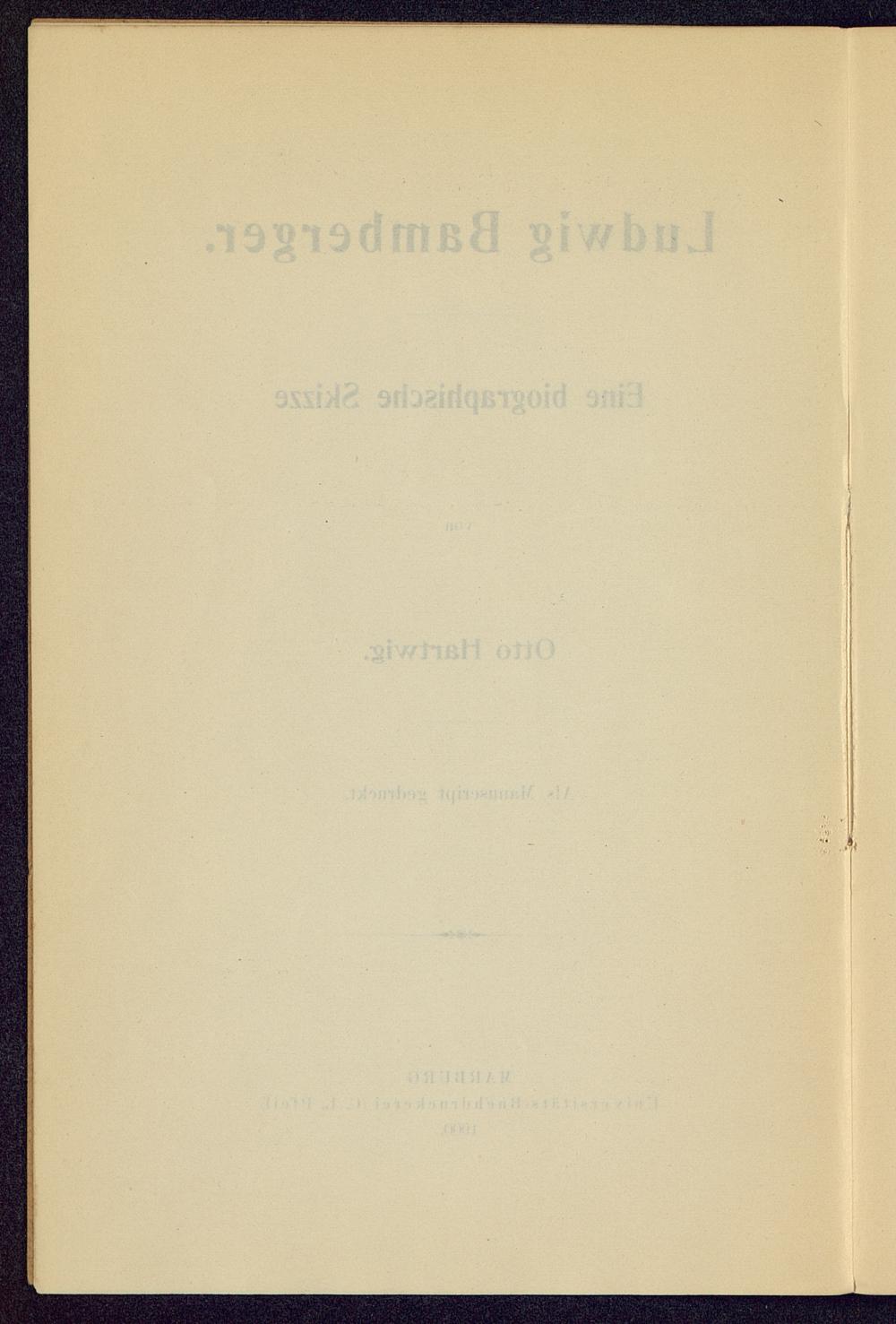 Ludwig Bamberger : eine biographische Skizze / von Otto Hartwig