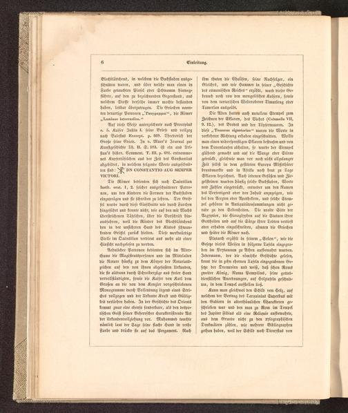 Ans diese Weise unterzeichnete nach Procopius c 5. Kaiser Justin I. seine Briefe und vollzognach NalesiuS lÄxcorxt. p. 669. Theodorich derGroße seine Edictc. In v. Murr's Journal zurKunstgeschichte Th. II. S. 183. ist ein aus Tri-stan'S histor. Comment. III. x>. 681. entnomme-nes Kupfertäfelchen ans der Zeit des Konstantinsabgebildet, in welchem folgende Worte ausgeschnit-ten sind: ^ IM L0?<81'^1'10 ^vv 8LAI?IZR.