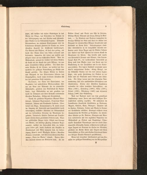 Durch die gelehrten Byzantiner Manuel Chry-soloras, Johannes Argyropulos , Demstrius Chal-kondylas, Johann und Konstantin LaSkariS , Theo-dorus von Gaza , Hermonymns n. A. wurde sowolim Umgang als Unterricht und hauptsächlich durchUebersetzuug classischer Schriften die Bekanntschaftmit der hellenischen Literatur im Abciwlaude be-gründet. Talentvolle Schüler Italiens und Deutsch-lands eiferten ihren griechischen Lehrern nach. Einerder gelehrtesten Jünger dieser Schule war Lorenzovon Medici, der würdige Zögling Johannes Argy-ropulos, welcher der Universität Pisa ein kräfti-geres Leben gab, durch Laskaris alte Klassiker inGriechenland nnd Asien sammeln ließ, die Uebcr-setznng Plato'S durch Marsiglio Ficino (Mui-«!!!»-;z?!,ciiui-i) veranlaßte, und sich so den ehrenvollen Bei-namen „ Vater der Musen " erwarb. Andere Für-sten Italiens eiferten den Mcdiceern nach. So die