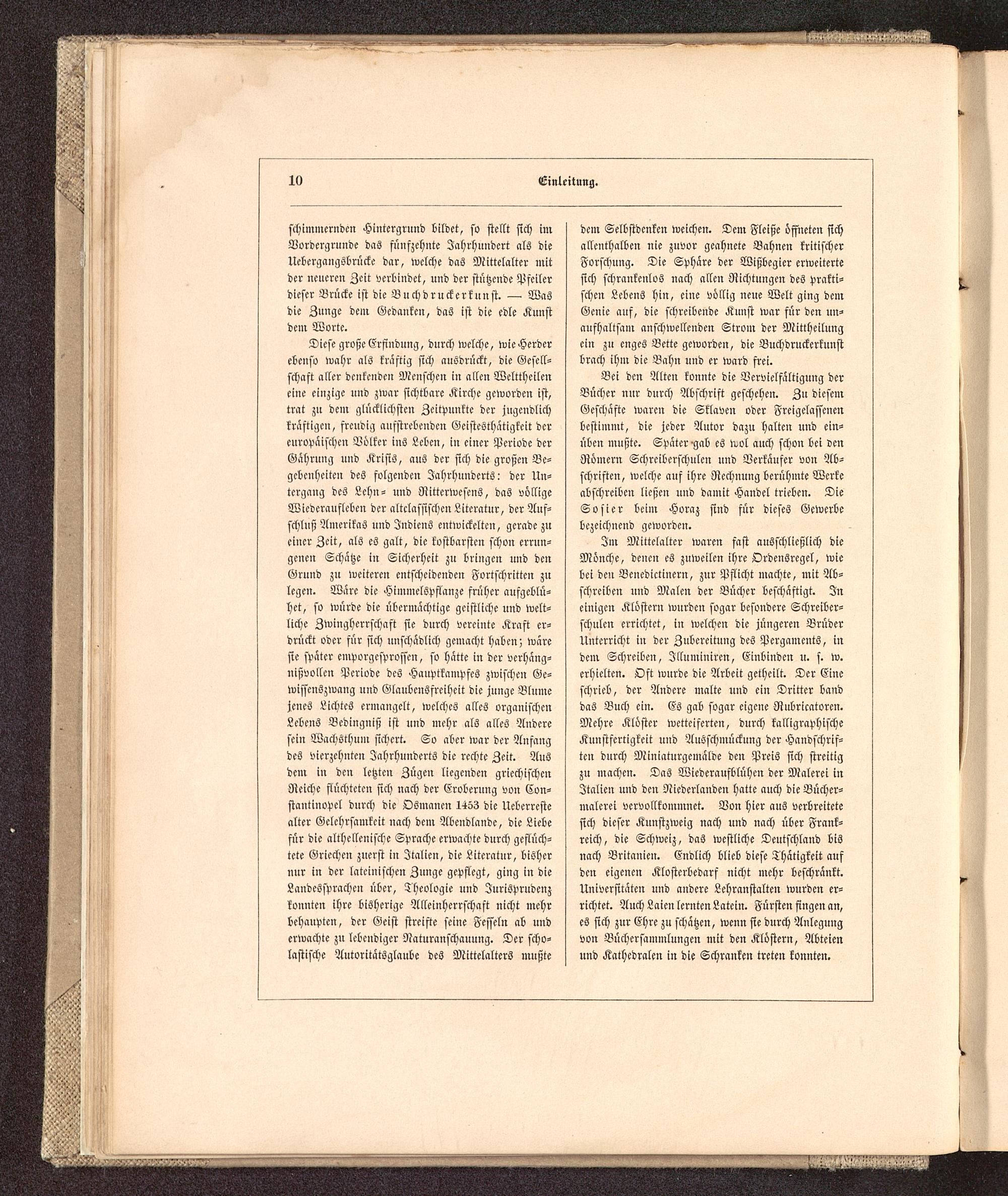 schimmernden Hintergrund bildet, so stellt sich imVordergründe das fünfzehnte Jahrhundert als dieUebergangSbrücke dar, welche das Mittclalter mitder neueren Zeit verbindet, und der stützende Pfeilerdieser Brücke ist die Buchdrucke rkunst. — Wasdie Zunge dem Gedanken, das ist die edle Kunstdem Worte.