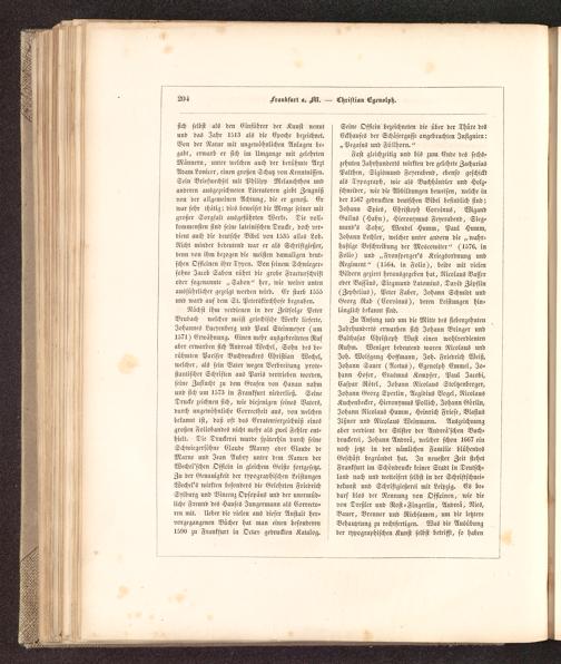 Fast gleichzeitig und bis zum Ende des sechs-zehntcn Jahrhunderts wirkten der gelehrte ZachariasPalthen, Sigiömnnd Feyerabend, ebenso geschicktals Typograph, wie als Buchhändler und Holz-schneider, wie die Abbildungen beweisen, welche inder 1567 gedruckten deutschen Bibel befindlich sind;Johann Spies , Christoph Corvinus, WigcmdGallus (Hahn), Hicronymus Feyerabend, Sieg-mnnd's Sohn.', Wendel Hnmm, Panl Humm,Johann Lechlcr, welcher unter andern die „wahr-haftige Beschreibung der Moscowiter" (1576. inFolio) und „Fronsperger's Kriegsordnung undRegiment" (1564. in Folio), beide mit vielenBildern geziert herausgegeben hat, Nicolans Basseroder Bassäus, Sicgmuud Latomius, David Zäpflin(ZephcliuS), Peter Faber, Johann Schmidt undGeorg Nab (Corvinus), deren Leistungen hin-länglich bekannt sind.