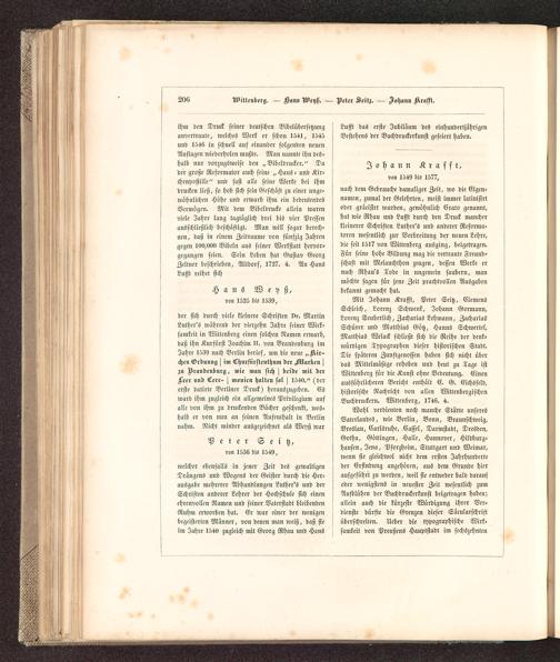 welcher ebenfalls in jener Zeit des gewaltigenDrängens und Wogens der Geister durch die Her-ausgabc mehrerer Abhandlungen Luther's und derSchriften anderer Lehrer der Hochschule sich einenehrenvollen Namen und seiner Vaterstadt bleibendenRuhm erworben hat. Er war einer der wenigenbegeisterten Manner, von denen man weiß, daß sieim Jahre 1540 zugleich mit Georg Rhau und Haus