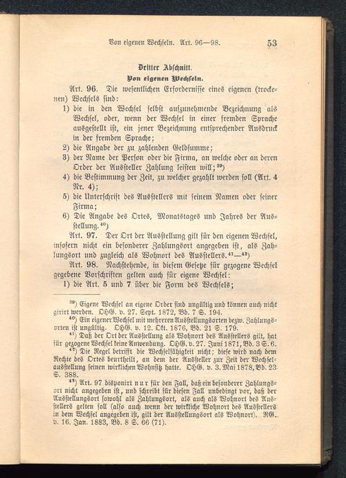 Ar«. 97. Der Ort der Ausstellung gilt für den eigenen Wechsel,insofern nicht ein besonderer Zahlungsort angegeben ist, als Zah-lungsort und zugleich als Wohnort des Ausstellers."—")