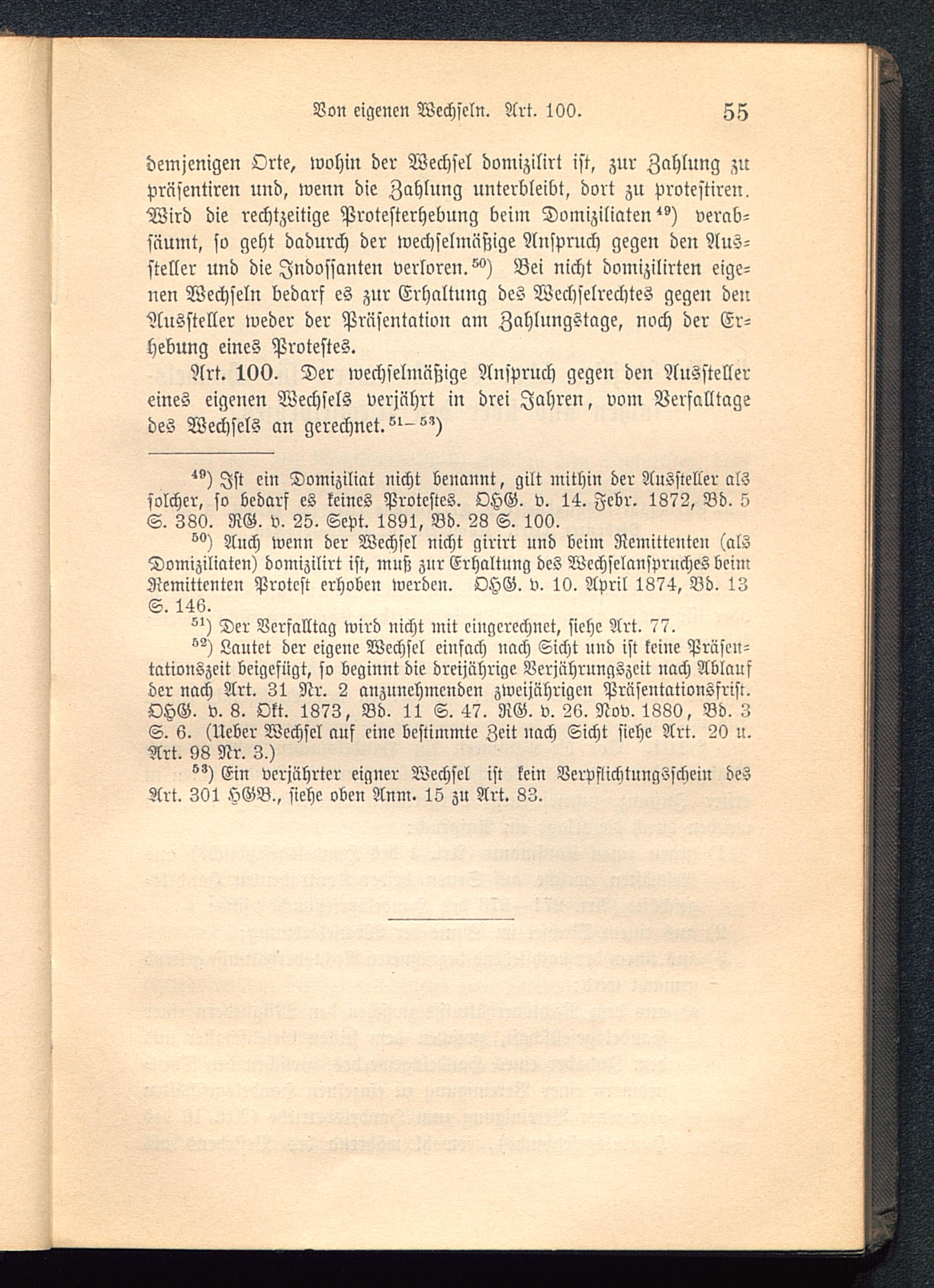 Art. 100. Der wechselmäßige Anspruch gegen den Ausstellereines eigenen Wechsels verjährt in drei Jahren, vom Verfalltagsdes Wechsels an gerechnet."-")