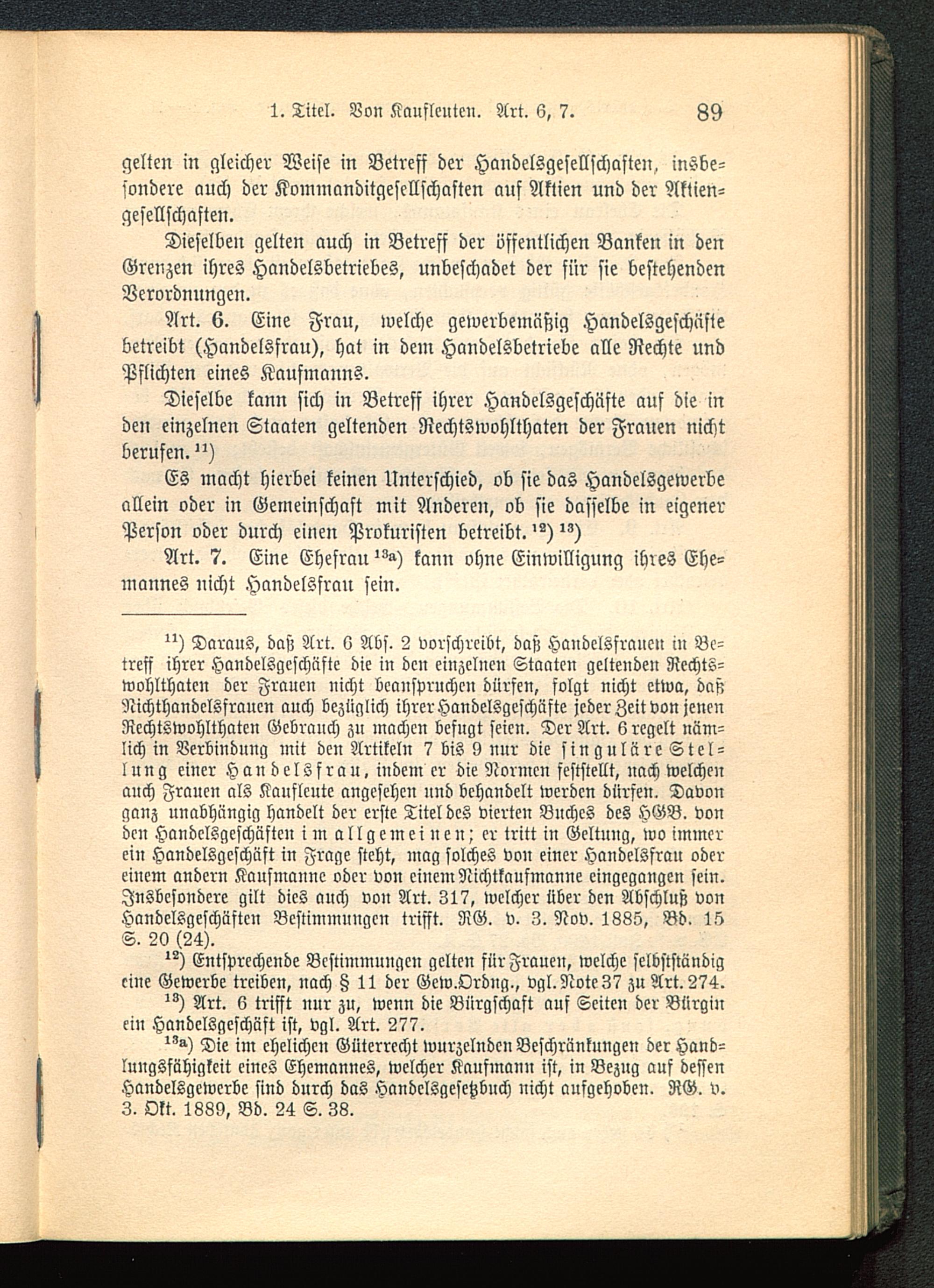 Art. 6. Eine Frau, welche gewerbsmäßig Handelsgeschäftebetreibt (Handelsfrau), hat in dein Handelsbetriebe alle Rechte undPflichten eines Kaufmanns.