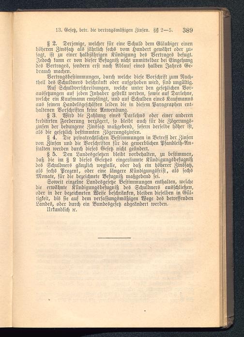 13. Gesetz, betr. die vertragsmäßige» Zinsen. ZZ S—5. Zgg