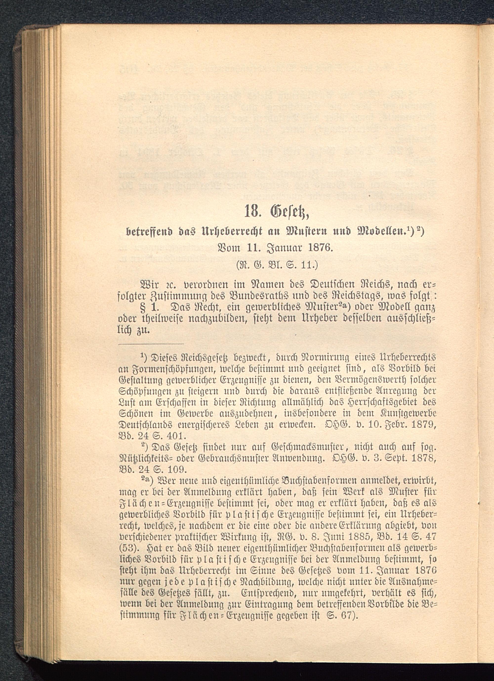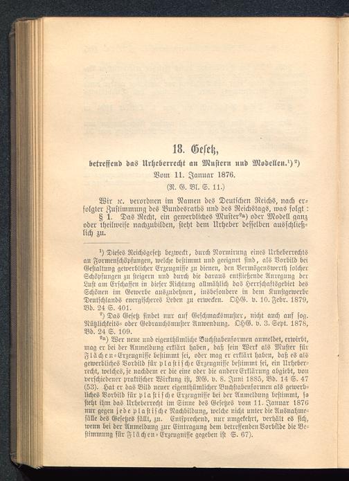 betreffend das Urheberrecht a» Mustern nnd Modelle».^)Vom lt. Januar 1876.(N. G. Bl. S. 11.)