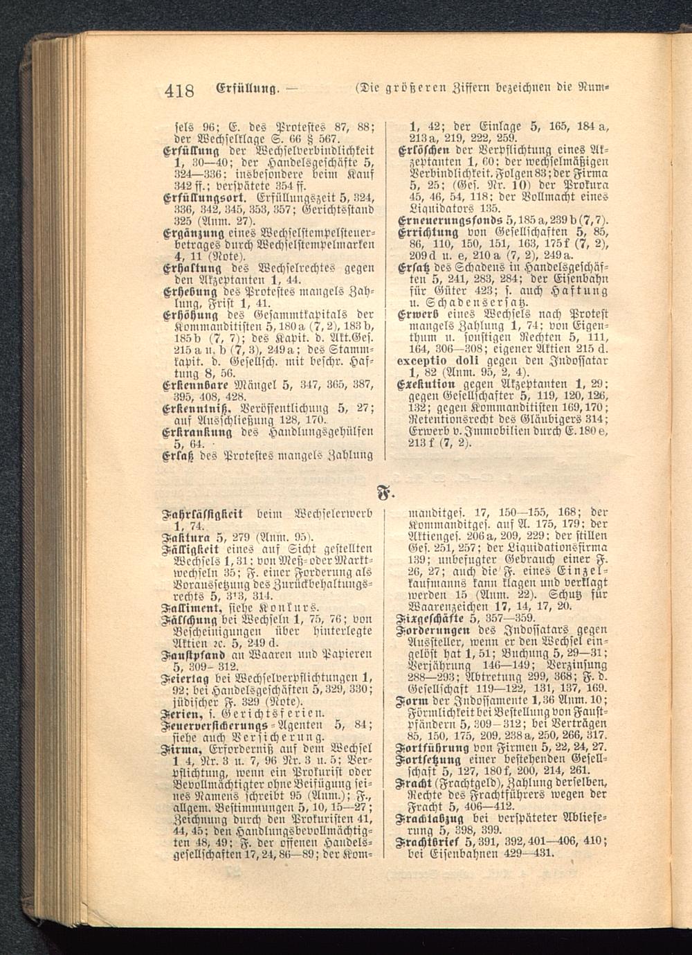 mandila.es. 17, IS»—ISS, 1K8; derKommanditgej. auf A. I7S, I7g: derAttiengcs. 2»»», 2»g, 22g i der stillenGes. 25,1, 2S7; der Liauidationssirma130; unbcsugtcr Gebrauch einer F.2«i, 27; anch die F. eines Einzcl-kansmanns kann klagen und verklagtwerden IS <A»m. 22). Schuft fürWaarcuzcichc» 17, 14, 17, A>.Ki^rgcschäfte 5, 3S7—3Sg.Aordernngen des Jndossatars gegenAussteller, wenn er den Wechsel ein-gelöst hat I, S1; Bnchnng 5, 2«—31;Verjährung 14»—14g; Verzinsung288—2g3; Abtretung 2gg, 3L8; F. d.Gesellschaft Ilg—122, 131, 137, II!g.Jorm der Indossamente 1,3» Aum. I»;Förmlichkeit bei Bestellung von Faust-psändcrn 5, SVS-L1L; bei Verträgen8S, IS». I7S, 2«g. 238», 2S», 2KK, 317.Kortnilirung von Firmen 5, 22, 24, 27.Fortsetzung einer bestehenden Gcscll-