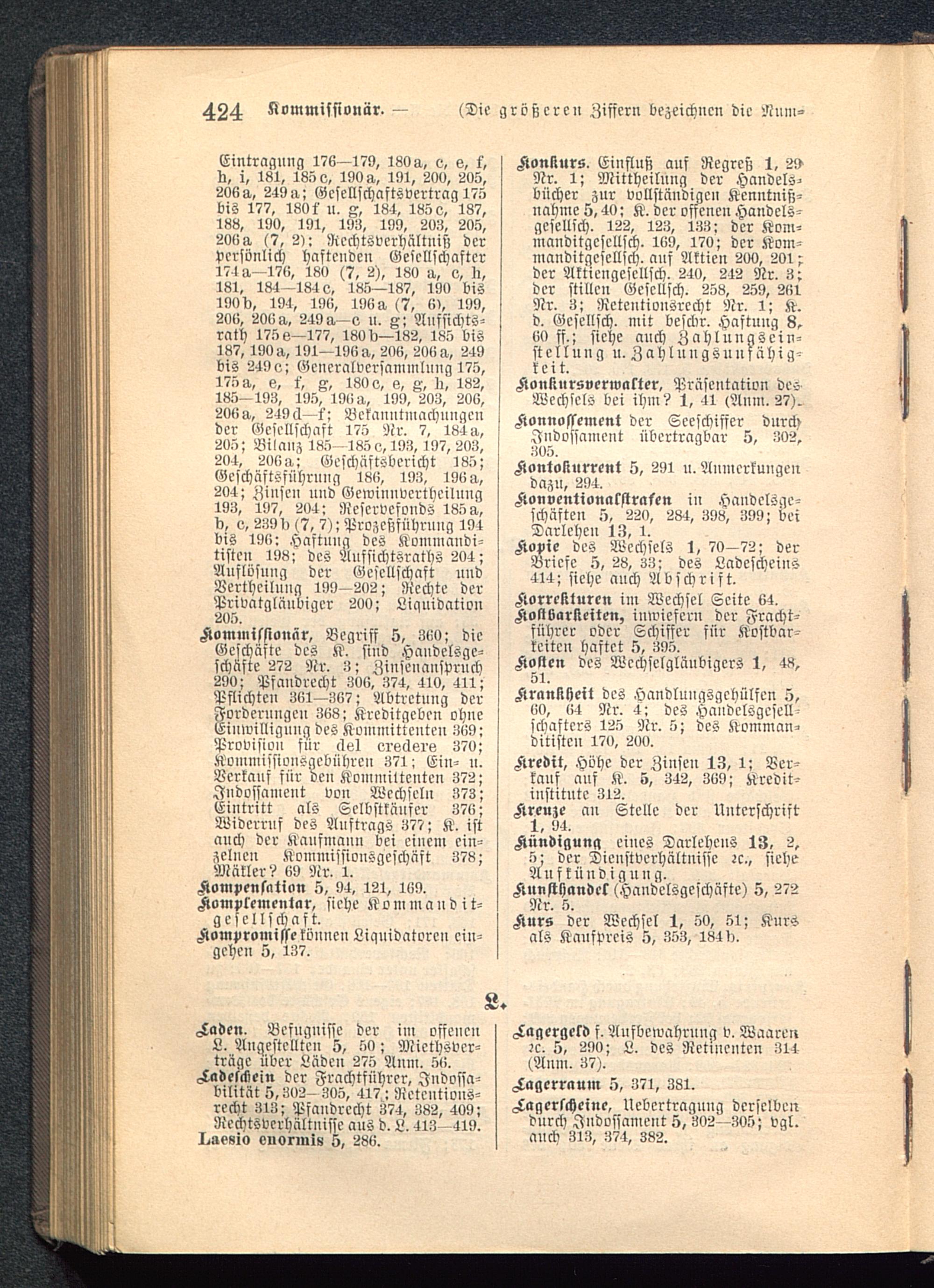 424 Kommissionär. — (Die größere» Ziffer» bezeichne» die Nuiu-