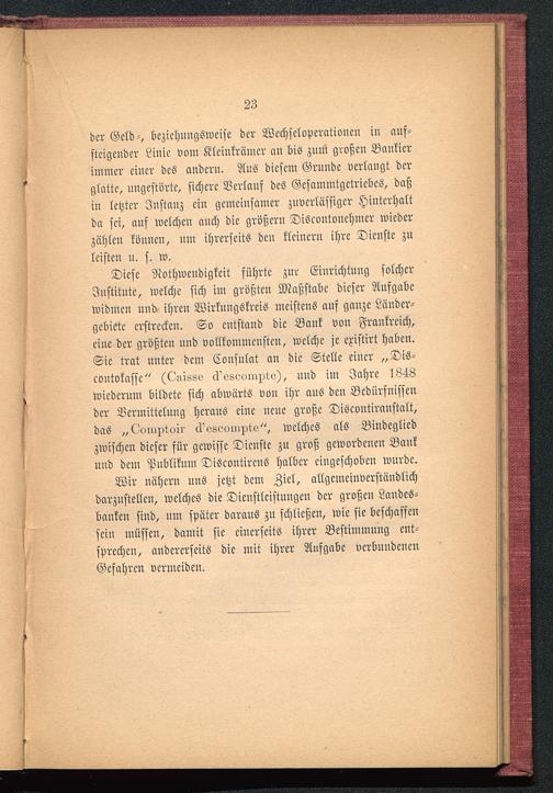 Diese Nothwendigkeit führte zur Einrichtung solcherInstitute, welche sich im größten Maßstabe dieser Aufgabewidmen und ihren Wirkungskreis meistens auf ganze Ländcr-gebictc erstrecken. So entstand die Bank von Frankreich ,eine der größten und vollkommensten, welche je cxistirt haben.Sie trat unter dem Consulat an die Stelle einer „Dis-contokasse" (Gaisse cHeoin^te), und im Jahre 1848wiederum bildete sich abwärts von ihr aus den Bedürfnissender Vermittelung heraus eine neue große Discontiranstalt,das „Ooiu^toir ck'oseoiniws", welches als Bindegliedzwischen dieser für gewisse Dienste zu groß gewordenen Bankund dem Publikum Discontirens halber ciugcschoben wurde.