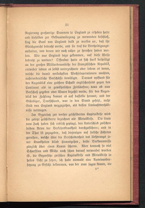 Im Gegensatz zur vorher geschilderten Kapitalkrise wirddie zuletzt geschilderte bezeichnet als Metallkrise. Die Leutevom Fach haben sich redlich geplagt, den Unterschied zwischenbeiden Arten der Vcrkchrskrankhcit durchzuführen; und inder That ist zuzugeben, daß diejenigen auf falsche Fährtengerathen, welche über die Verschiedenheit des Ursprungs je-ner Krankheiten blind hinausgehen, beide Vorkommnissegänzlich über einen Kamm scheren. Aber dennoch so vielScharfsinn und Mühe auch schon darauf verwendet wordenist, die Gegensätze zwischen Kapitalkrise und Mctallkrise inHelles Licht zu setzen, ich habe niemals eine Auseinander-setzung zu Gesicht bekommen, von der man sagen könnte, die