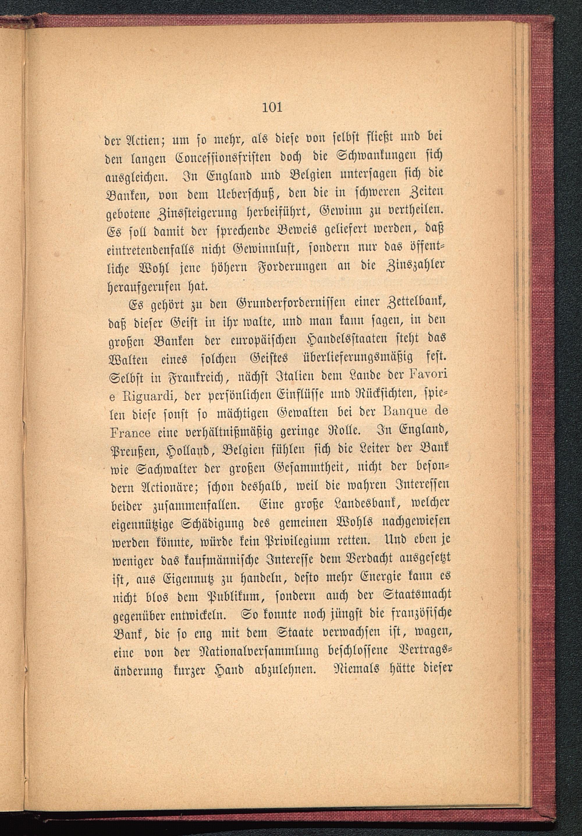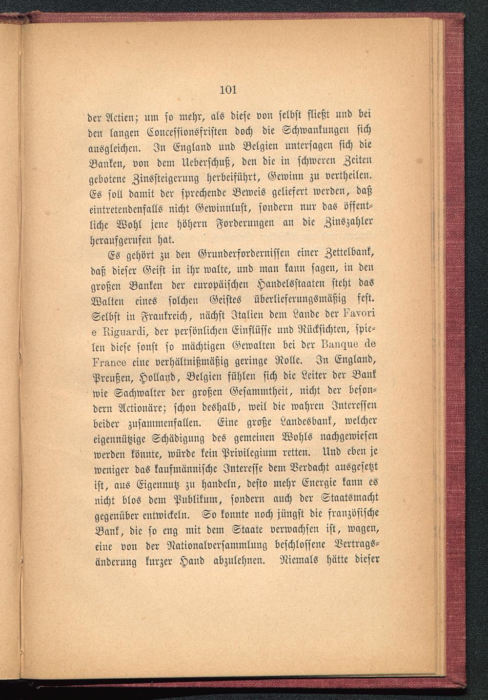 der Actien; um so mehr, als diese von selbst fließt und beiden langen Conccssionsfristen doch die Schwankungen sichausgleichen. In England und Belgien untersagen sich dieBanken, von dem Ueberschuß, den die in schweren Zeitengebotene Zinsstcigcrung herbeiführt, Gewinn zu vertheilen.Es soll damit der sprechende Beweis geliefert werden, daßeintretendenfalls nicht Gcwinnlust, sondern nur das öffent-liche Wohl jene höhcrn Forderungen an die Zinszahlerherausgerufen hat.