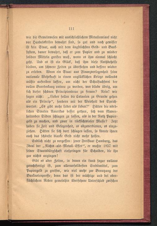 Gibt es aber Zeiten, in denen ein Land sogar vollausgerechtfertigt ist, zum allerunsolidesten Creditmittel, zumPapiergeld zu greisen, wie viel mehr zur Benutzung derBanknotenpresse; denn das ist der mächtige und bei ober-flächlichem Reden gemeinhin übersehene Unterschied zwischen