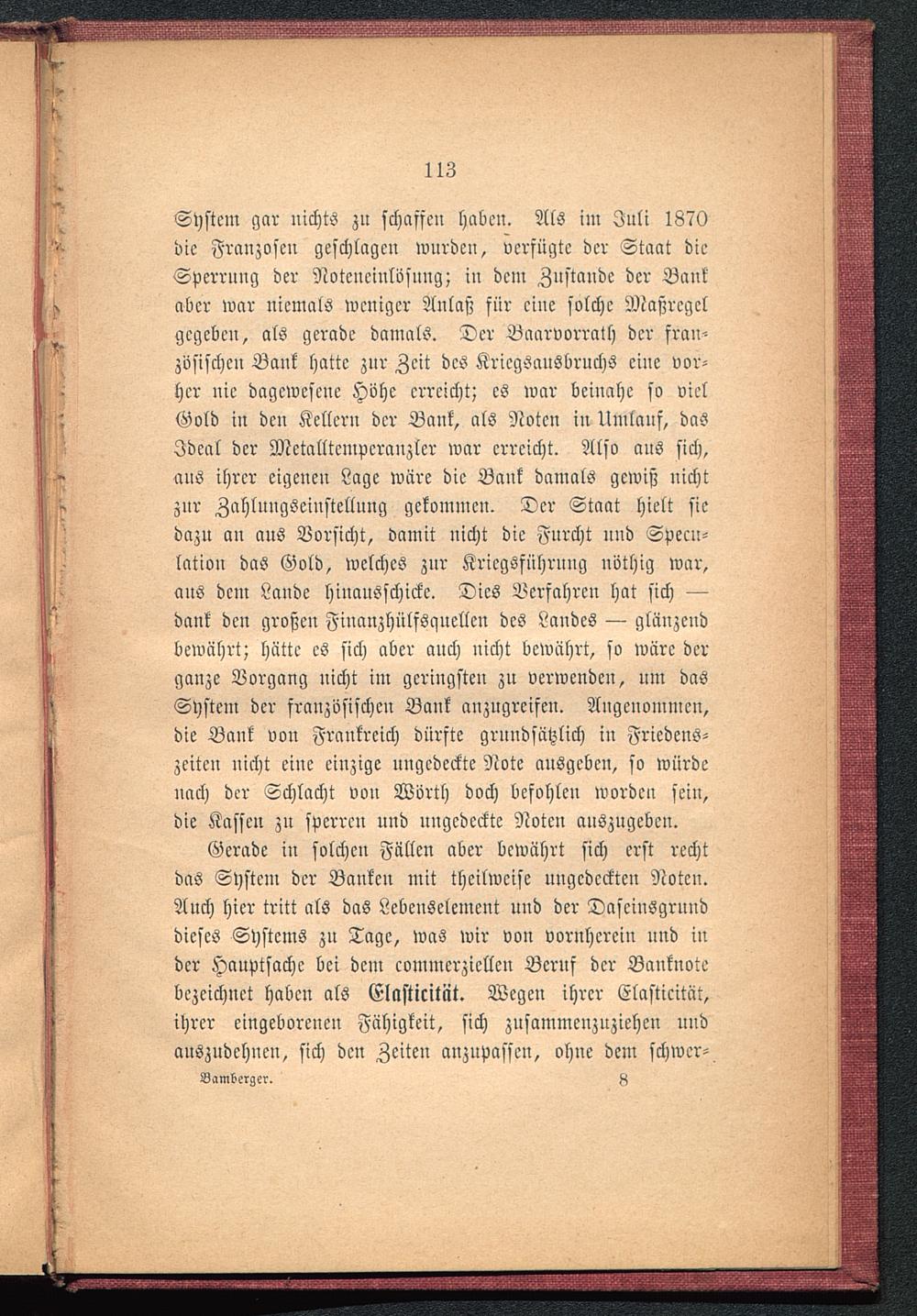 Gerade in solchen Fällen aber bewährt sich erst rechtdas System der Banken mit thcilweise ungedeckten Noten.Auch hier tritt als das Lebcnsclement und der Dascinsgrunddieses Systems zu Tage, was wir von vornherein und inder Hauptsache bei dem commerzicllen Beruf der Banknotebezeichnet haben als Elasticität. Wegen ihrer Elasticität,ihrer eingeborenen Fähigkeit, sich zusammenzuziehen undauszudehnen, sich den Zeiten anzupassen, ohne dem schwer-