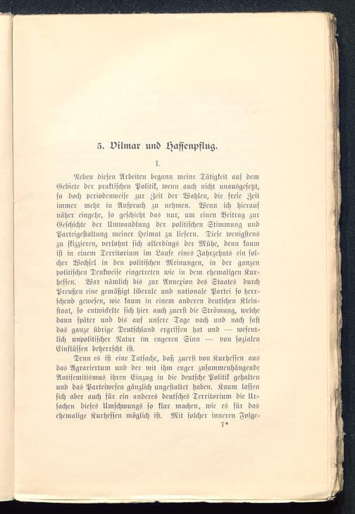 Neben diesen Arbeiten begann meine Tätigkeit auf demGebiete der praktischen Politik, wenn auch nicht unausgesetzt,so doch Periodenweise znr Zeit der Wahlen, die freie Zeitimmer mehr in Anspruch zu nehmen. Wenn ich hieraufnäher eingehe, so geschieht das nur, um einen Beitrag zurGeschichte der Umwandlung der Politischen Stimmung undParteigestaltnng meiner Heimat zu liefern. Diese wenigstenszu skizzieren, verlohnt sich allerdings der Mühe, denn kaumist in einem Territorium im Laufe eines Jahrzehnts ein sol-cher Wechsel in den politischen Meinungen, in der ganzenPolitischen Denkweise eingetreten wie in dem ehemaligen Knr-hcsseiü War nämlich bis zur Annexion des Staates durchPreußen eine gemäßigt liberale und nationale Partei so herr-schend gewesen, wie kaum in einem anderen deutschen Klein-staat, so entwickelte sich hier auch zuerst die Strömung, welchedann später und bis auf unsere Tage nach und nach fastdas ganze übrige Deutschland ergriffen hat und — wesent-lich unpolitischer Natur im engeren Sinn — von sozialenEinflüssen beherrscht ist.