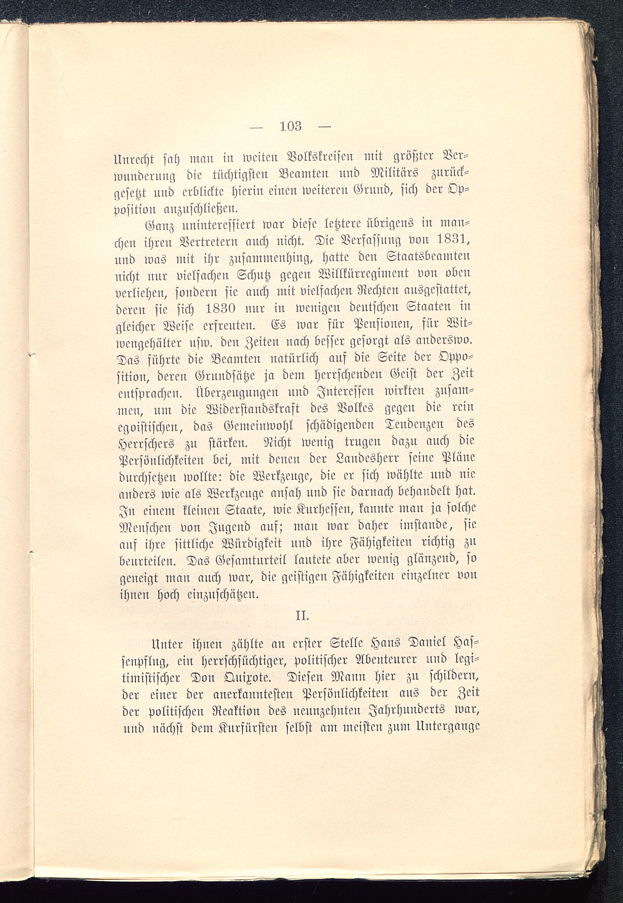Unter ihnen zählte an erster Stelle Hans Daniel Has-senpflug, ein herrschsüchtiger, Politischer Abenteurer und legi-timistischer Don Qnixote. Diesen Mann hier zu schildern,der einer der anerkanntesten Persönlichkeiten aus der Zeitder Politischen Reaktion des neunzehnten Jahrhunderts war,und nächst dem Kurfürsten selbst am meisten znm Untergänge